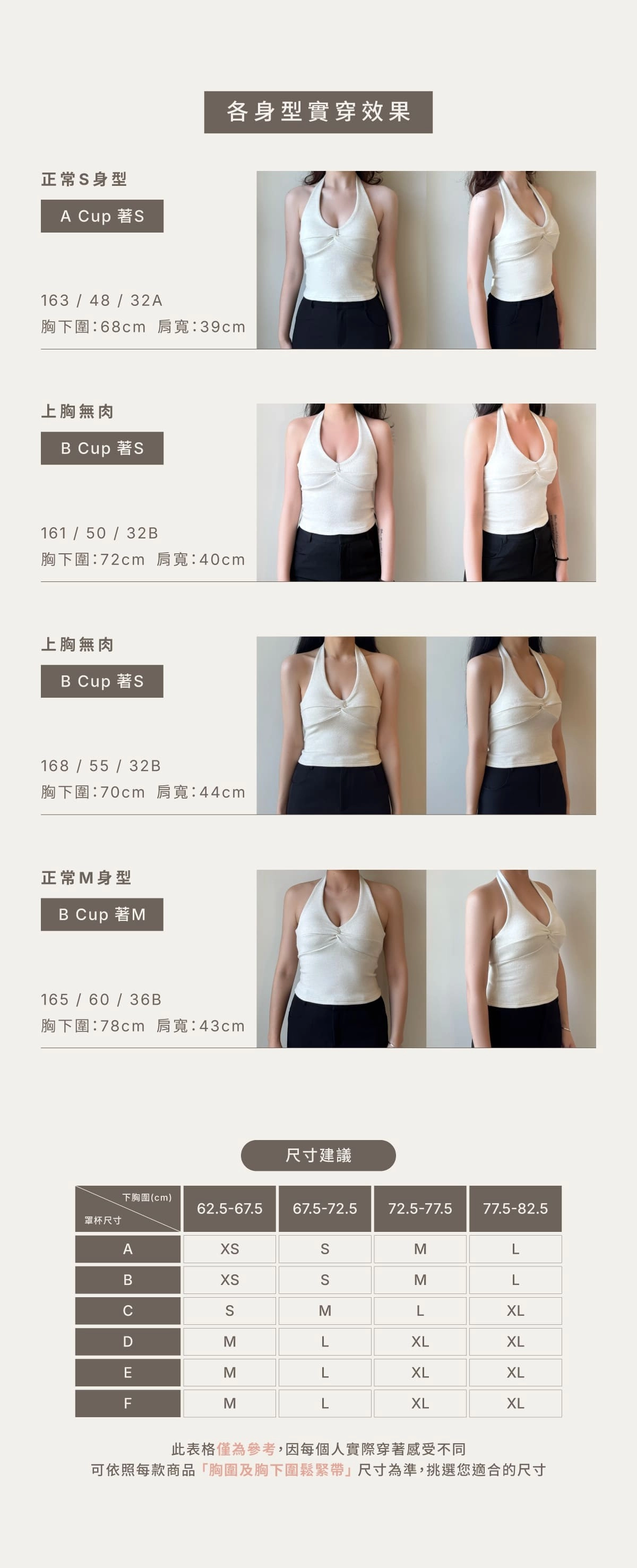 BRA TOP尺寸選購除了要參考罩杯外也需參考身高、體重