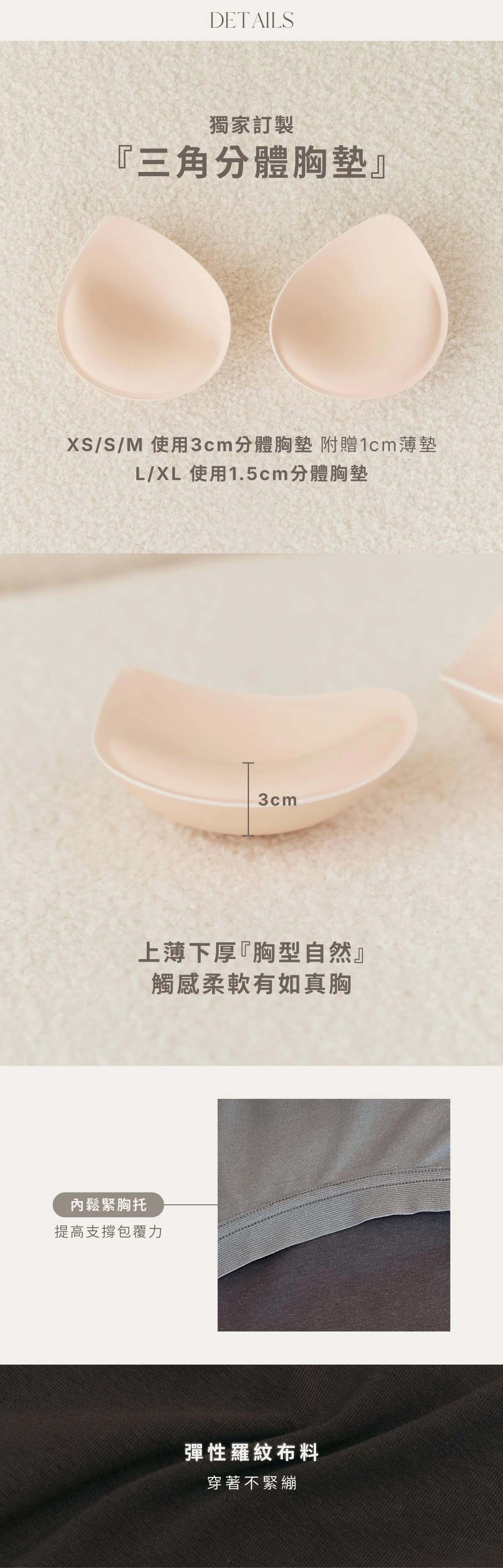 胸托下圍鬆緊設計,胸部/胸墊不易走位、下垂