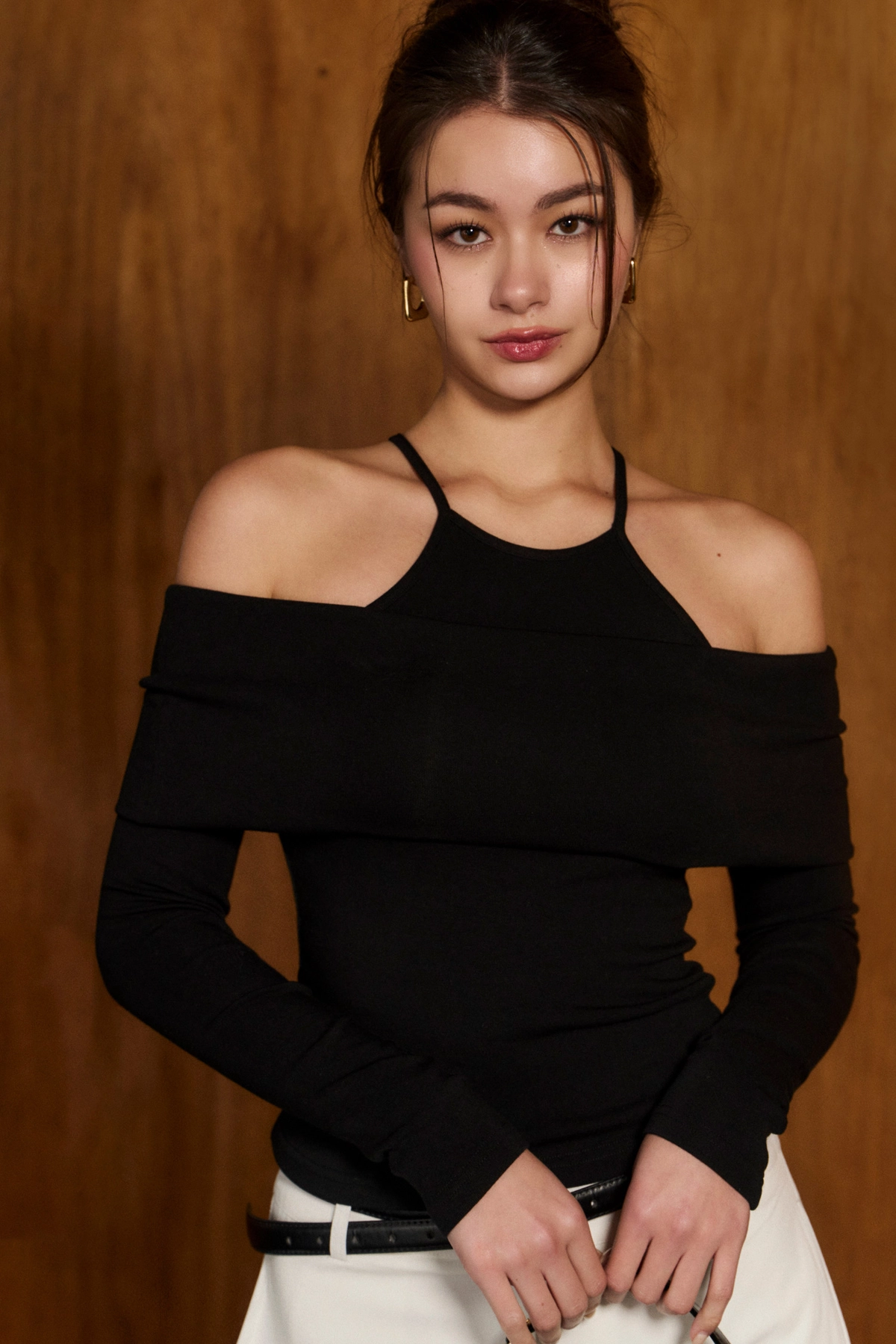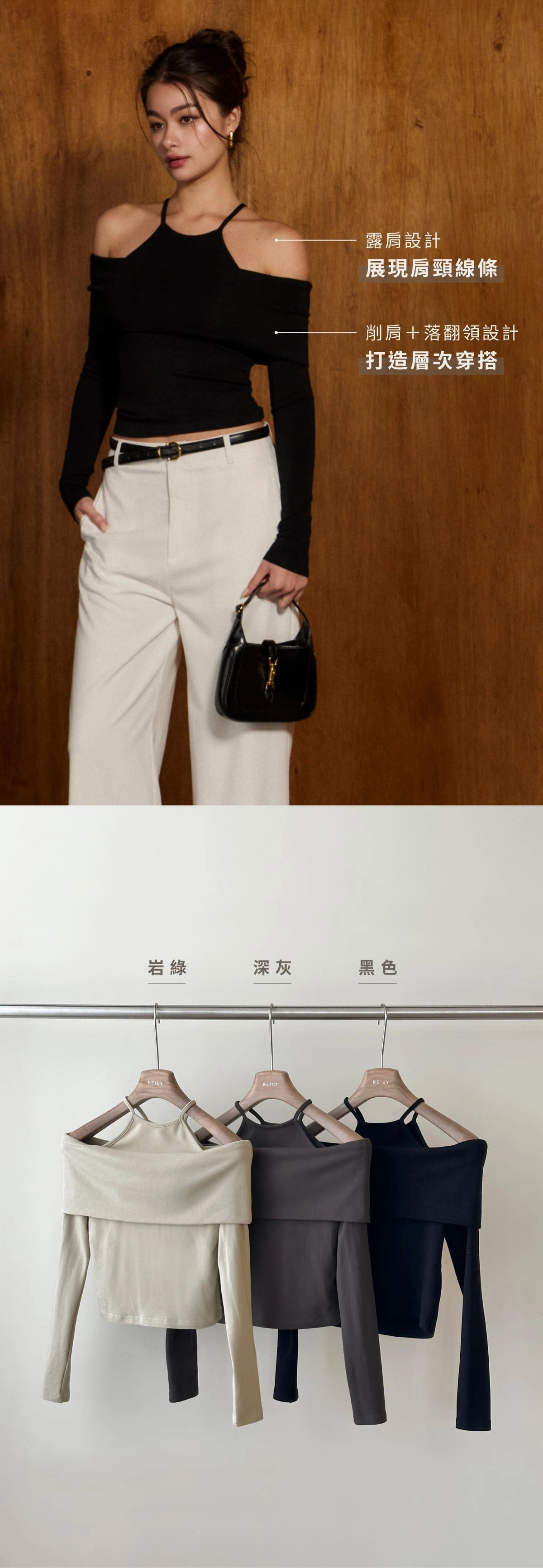 2.結合削肩+落翻領設計,一件完成層次穿搭