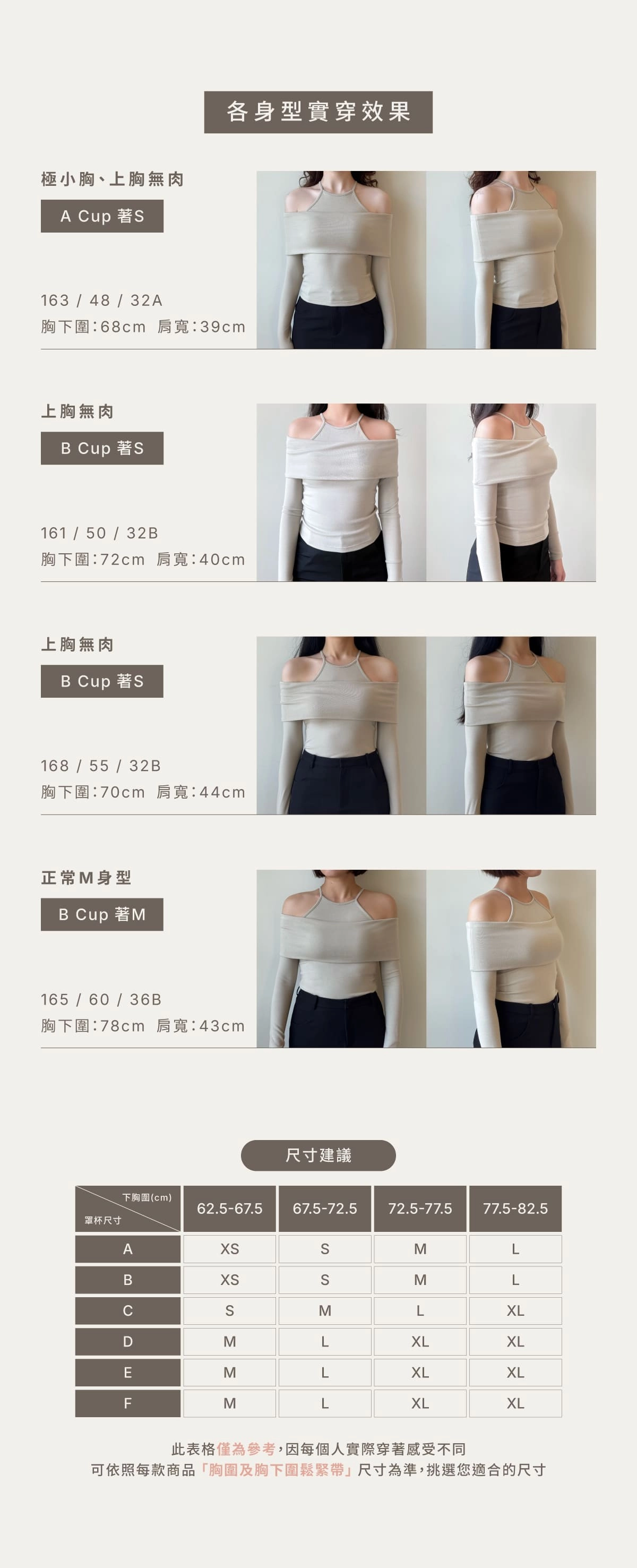 BRA TOP尺寸選購除了要參考罩杯外也需參考身高、體重