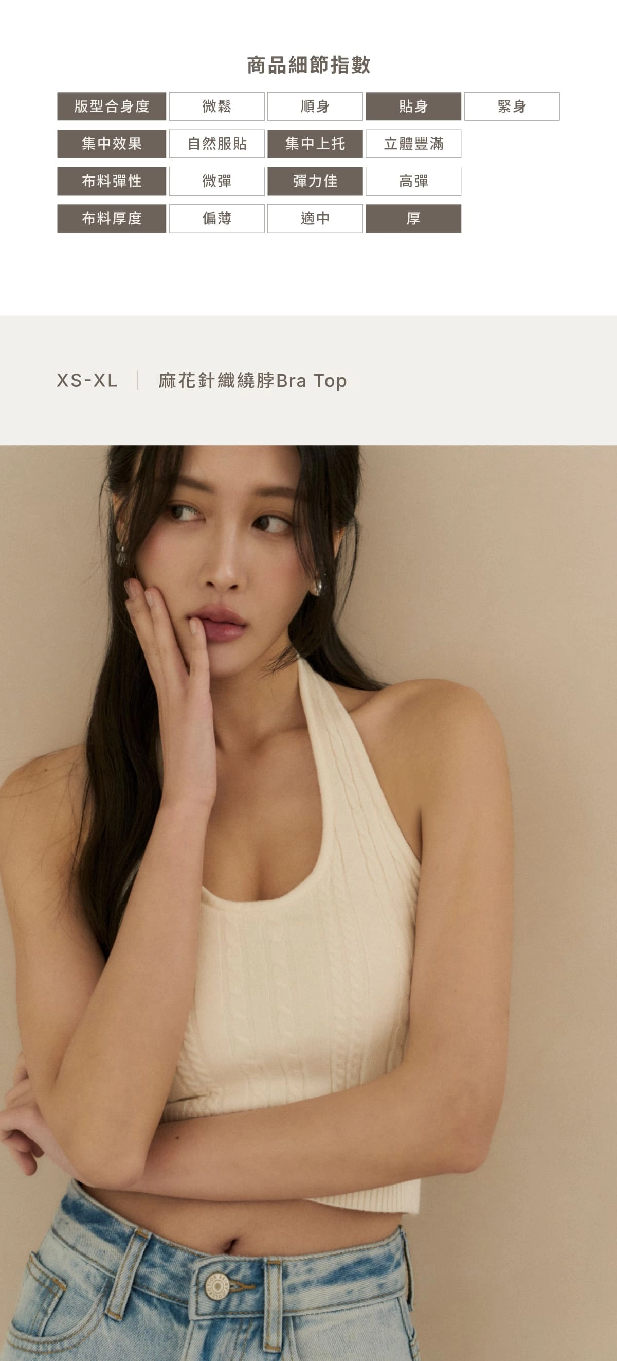 2.立體麻花織紋,修飾上身曲線、胸型