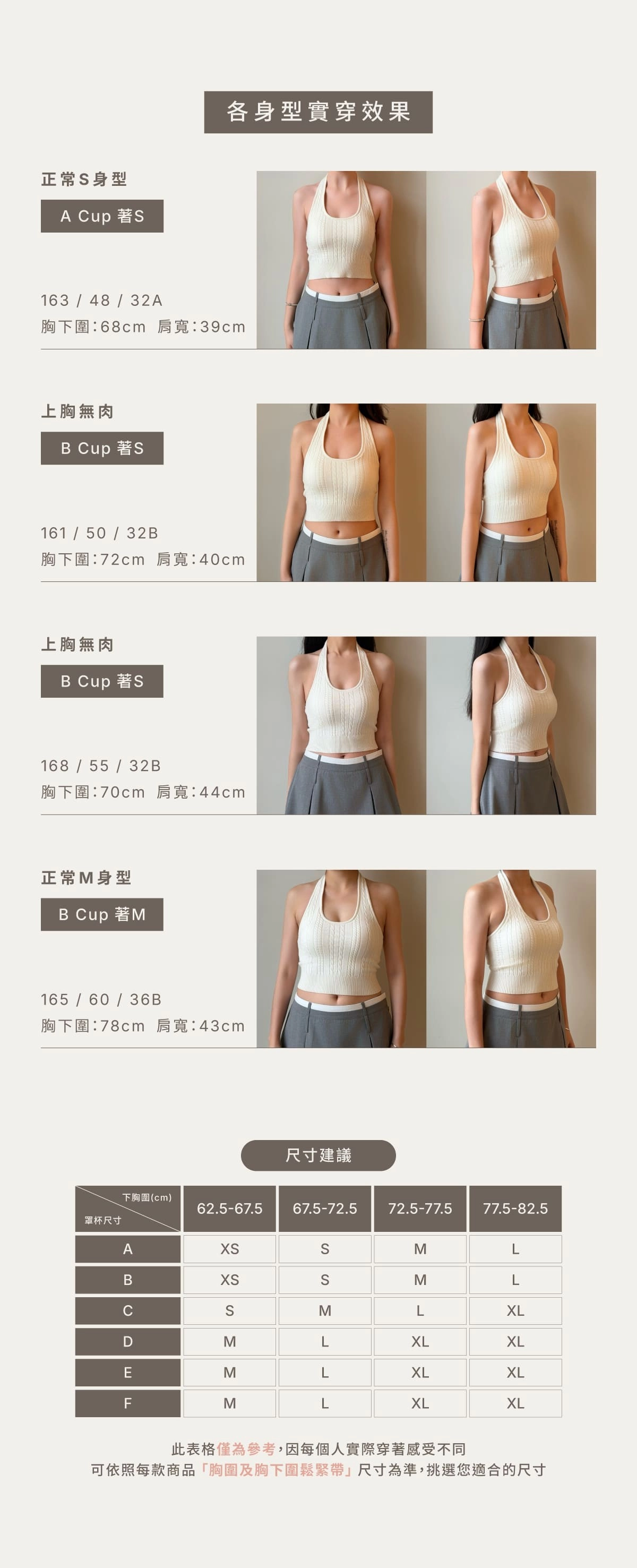 BRA TOP尺寸選購除了要參考罩杯外也需參考身高、體重