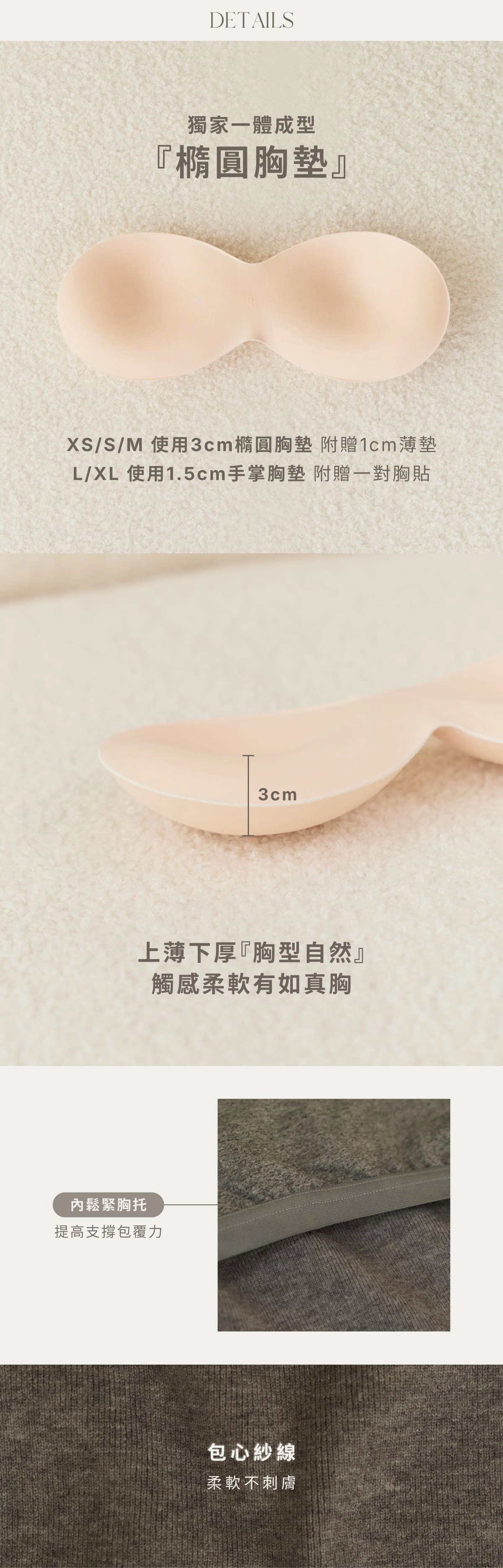 胸托下圍鬆緊設計,胸部/胸墊不易走位、下垂