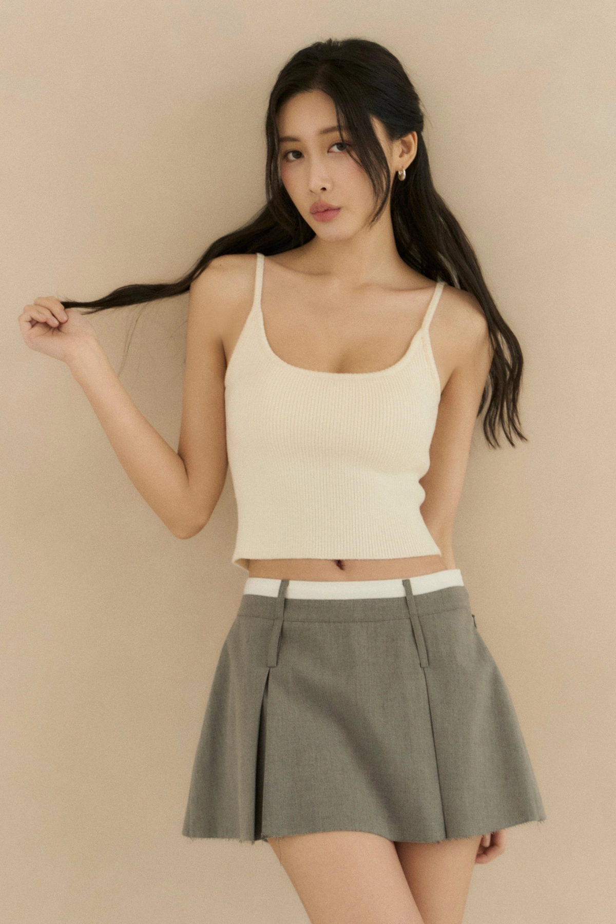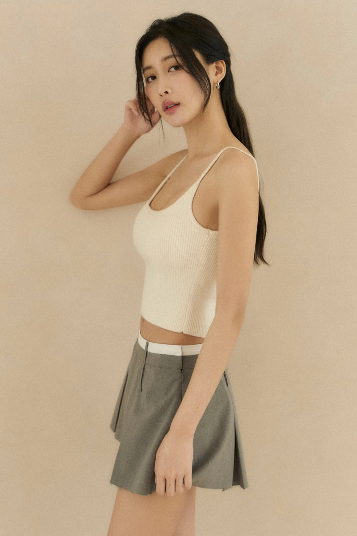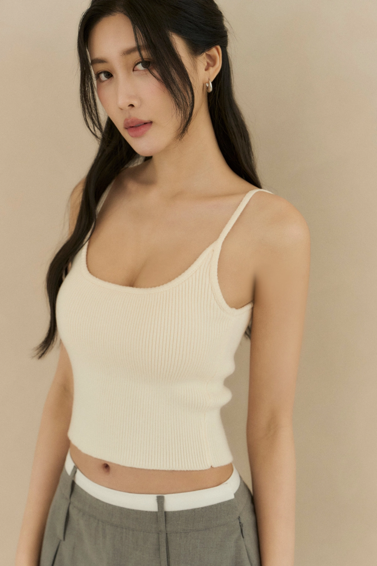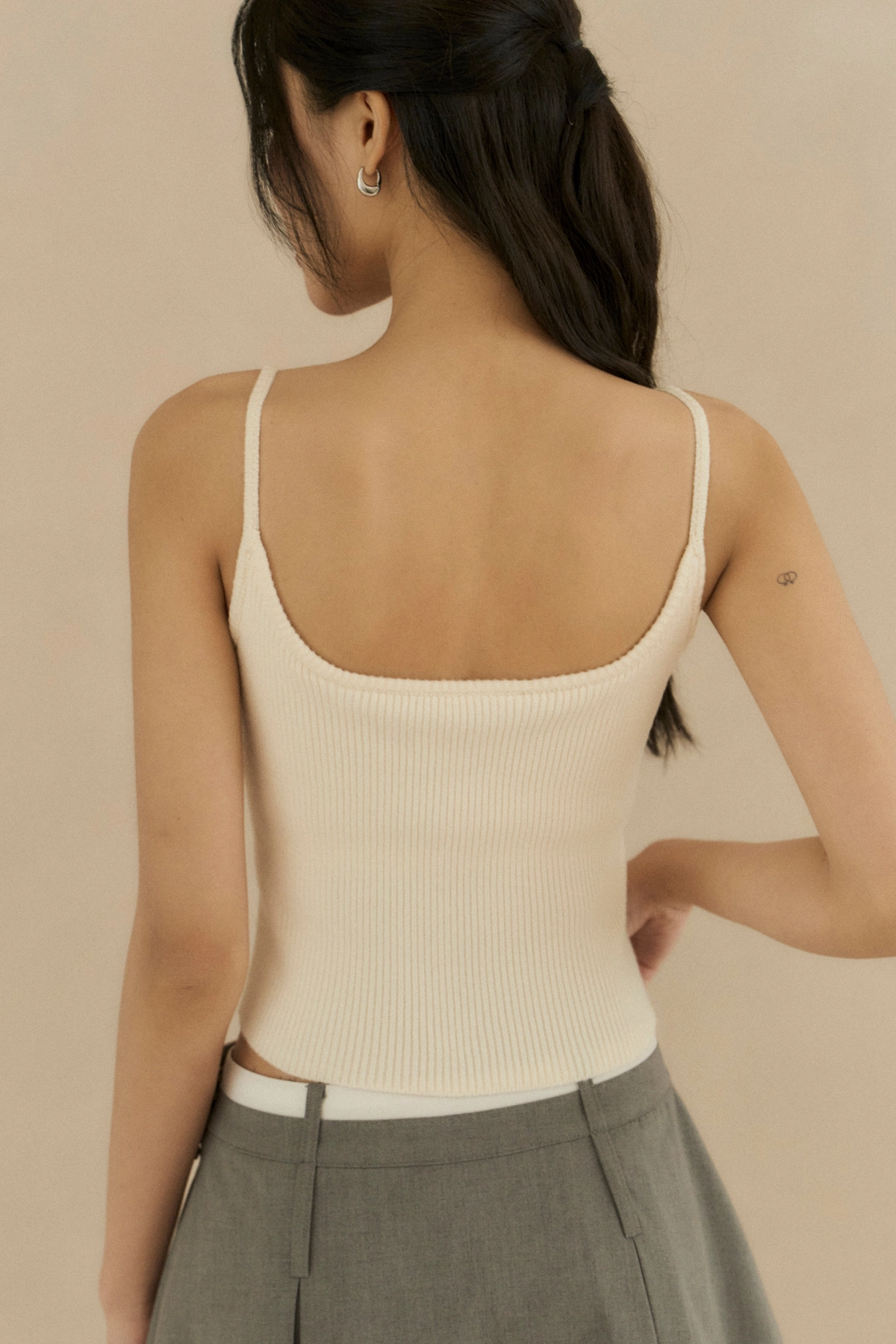 針織細肩U領Bra Top-奶油白