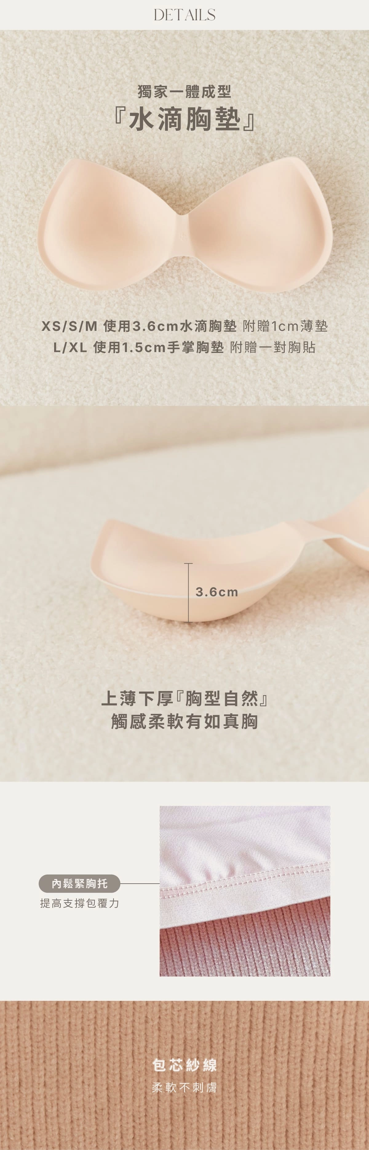 XS-M貝橘獨家打版3.6cm.1cm水滴胸墊