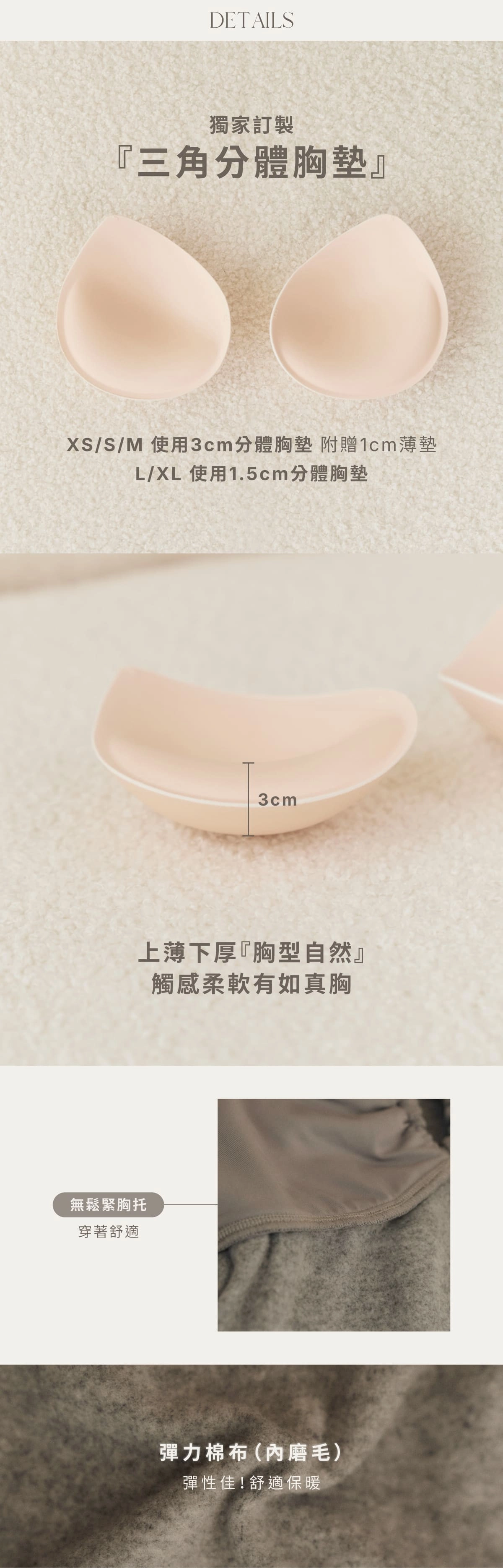 XS-M貝橘獨家打版3cm.1cm分體胸墊