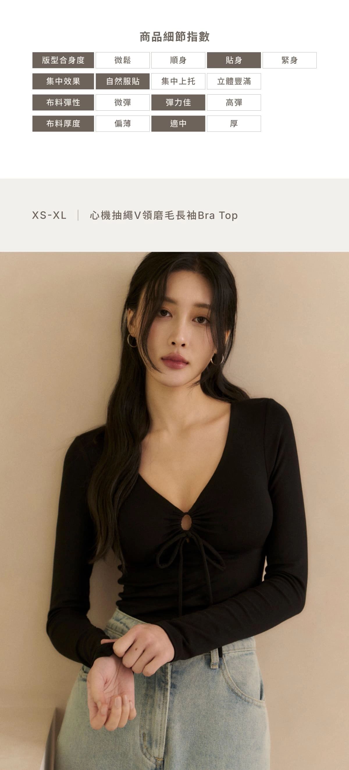 2.心機抽繩設計,可自由調整鬆緊,修飾胸型