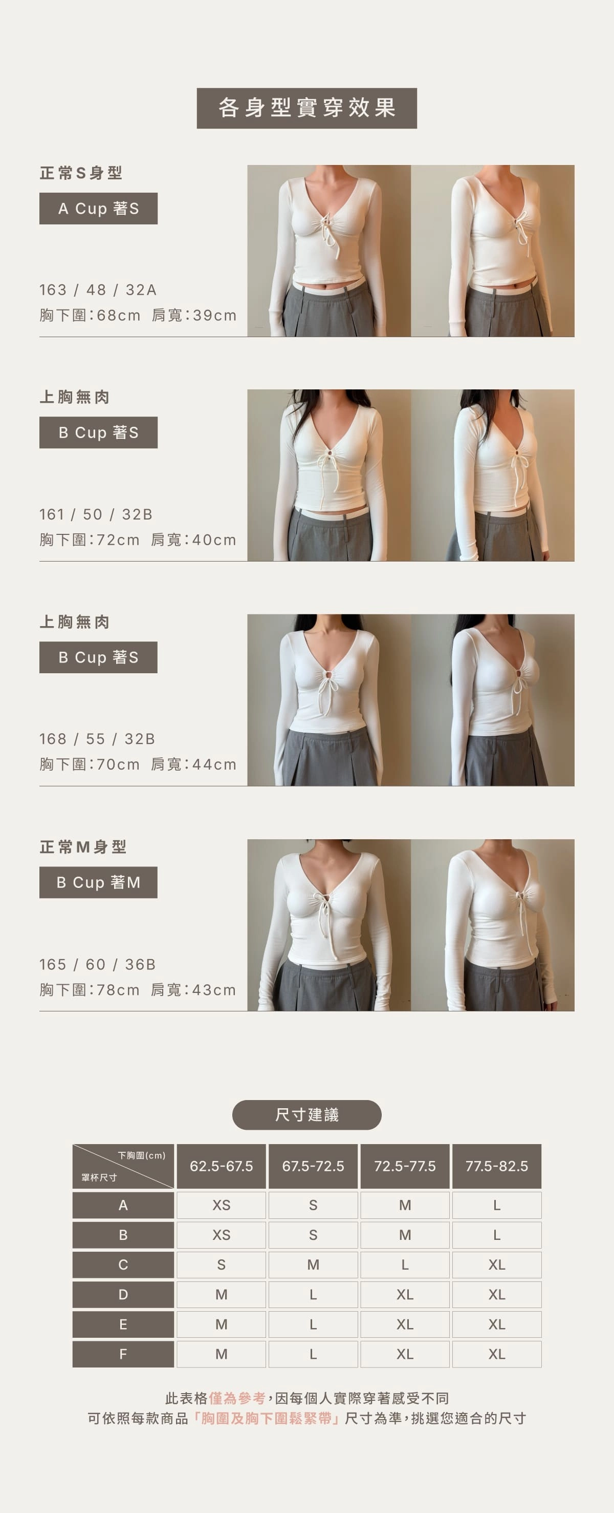 BRA TOP尺寸選購除了要參考罩杯外也需參考身高、體重