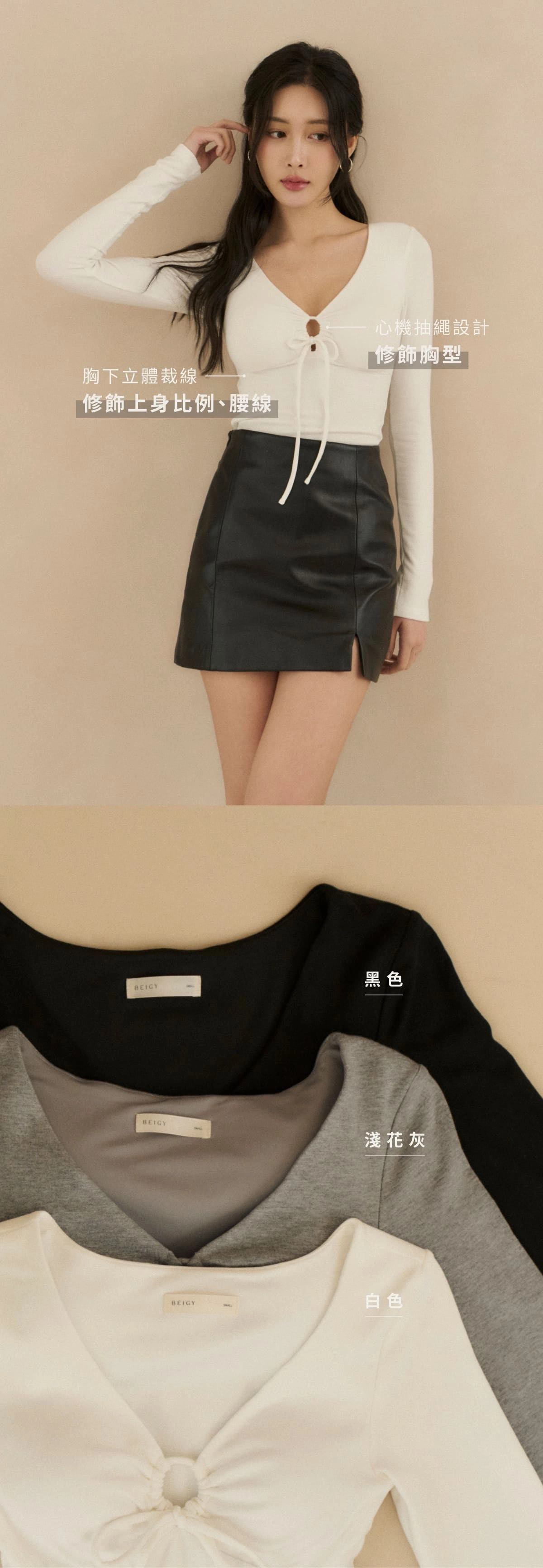 3.胸下立體裁線,視覺修飾上身比例、腰線