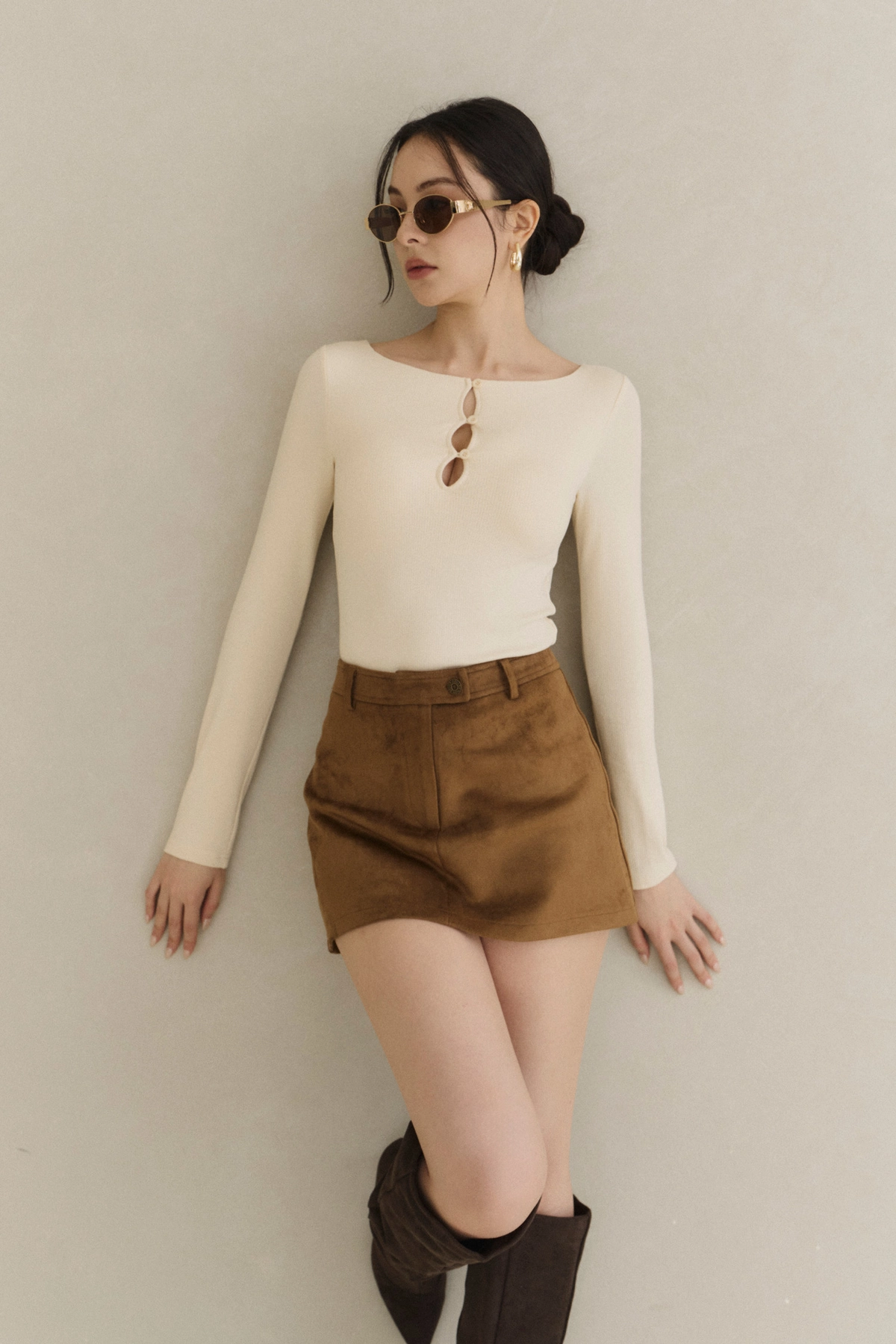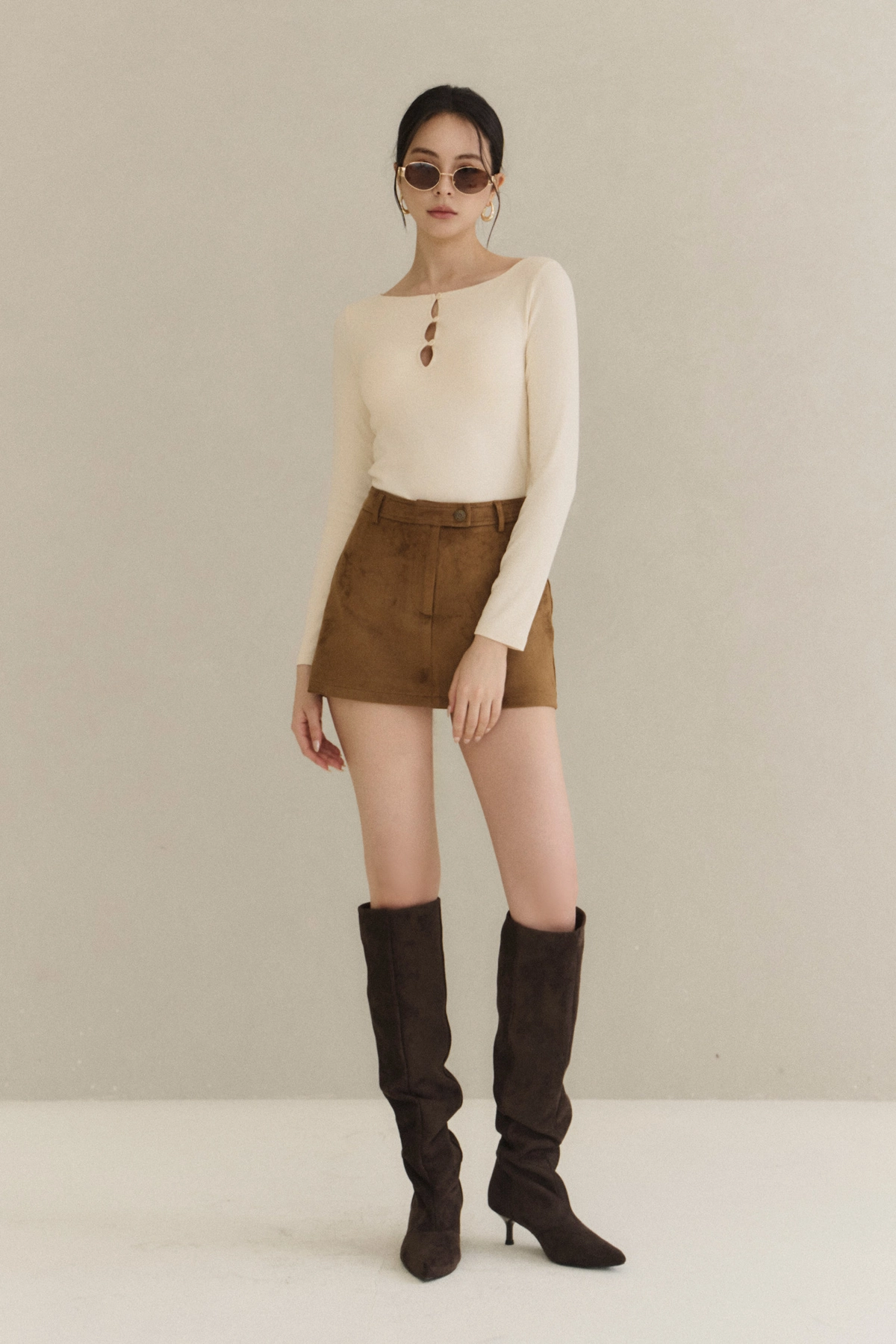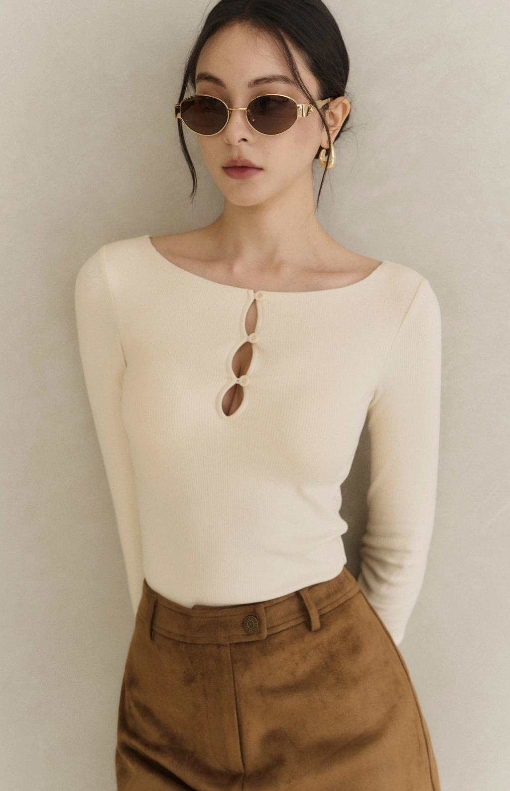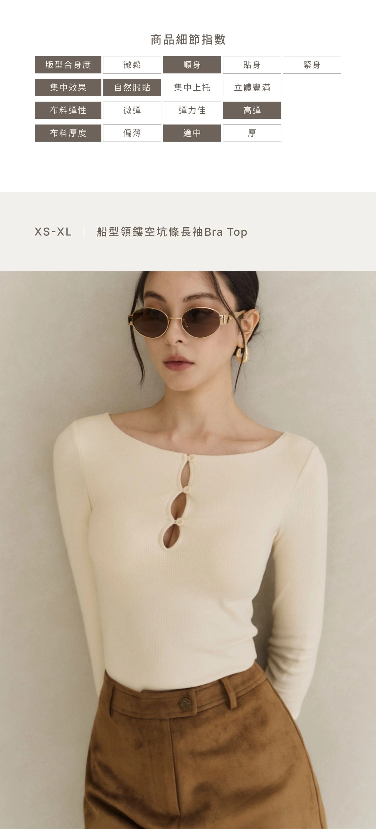 2.優雅船型領設計,修飾肩頸鎖骨線條