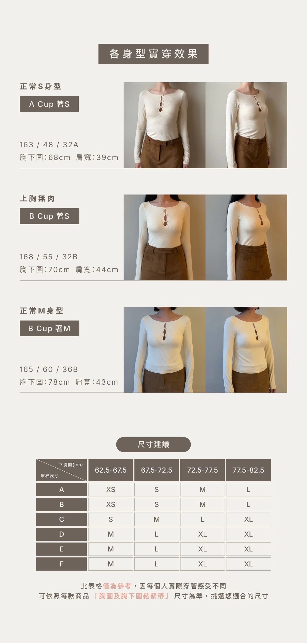 BRA TOP尺寸選購除了要參考罩杯外也需參考身高、體重
