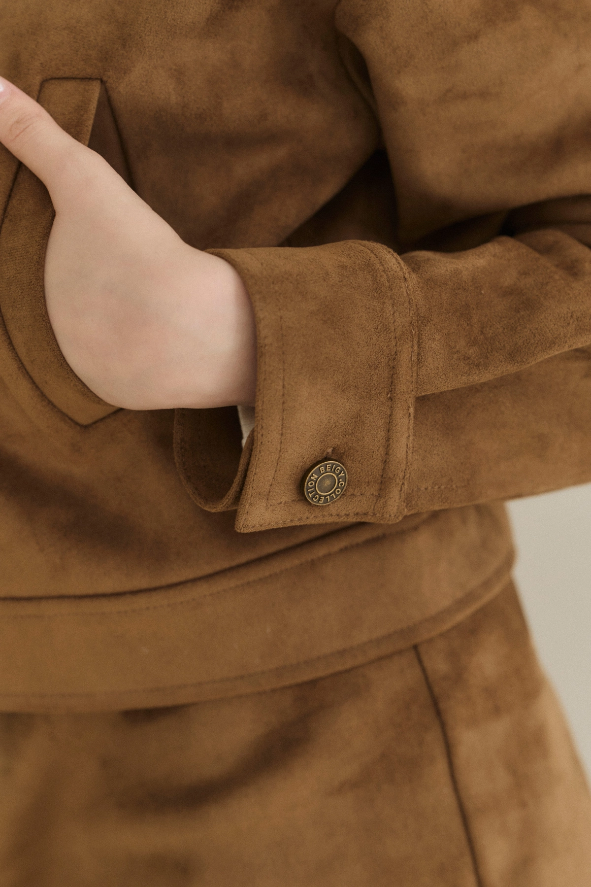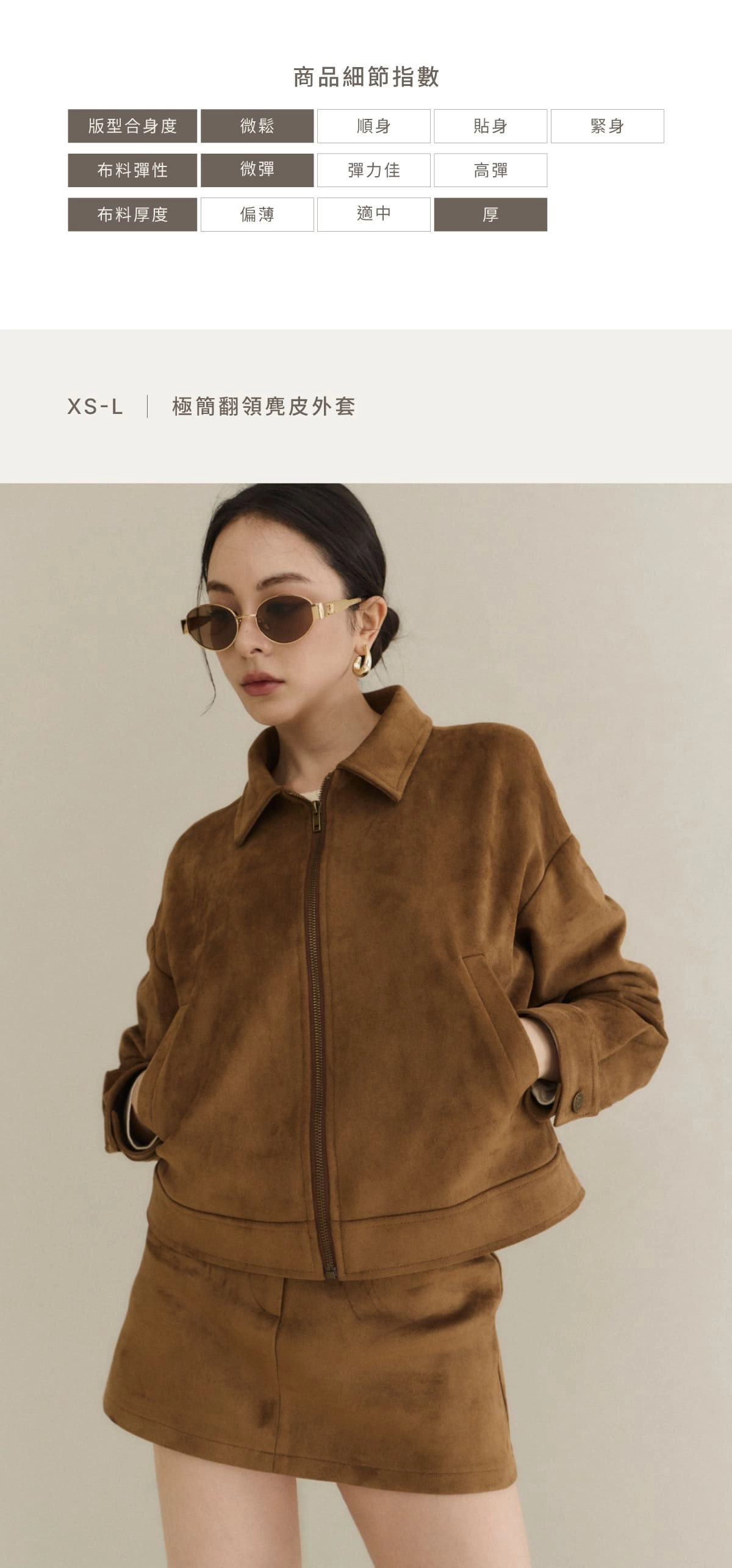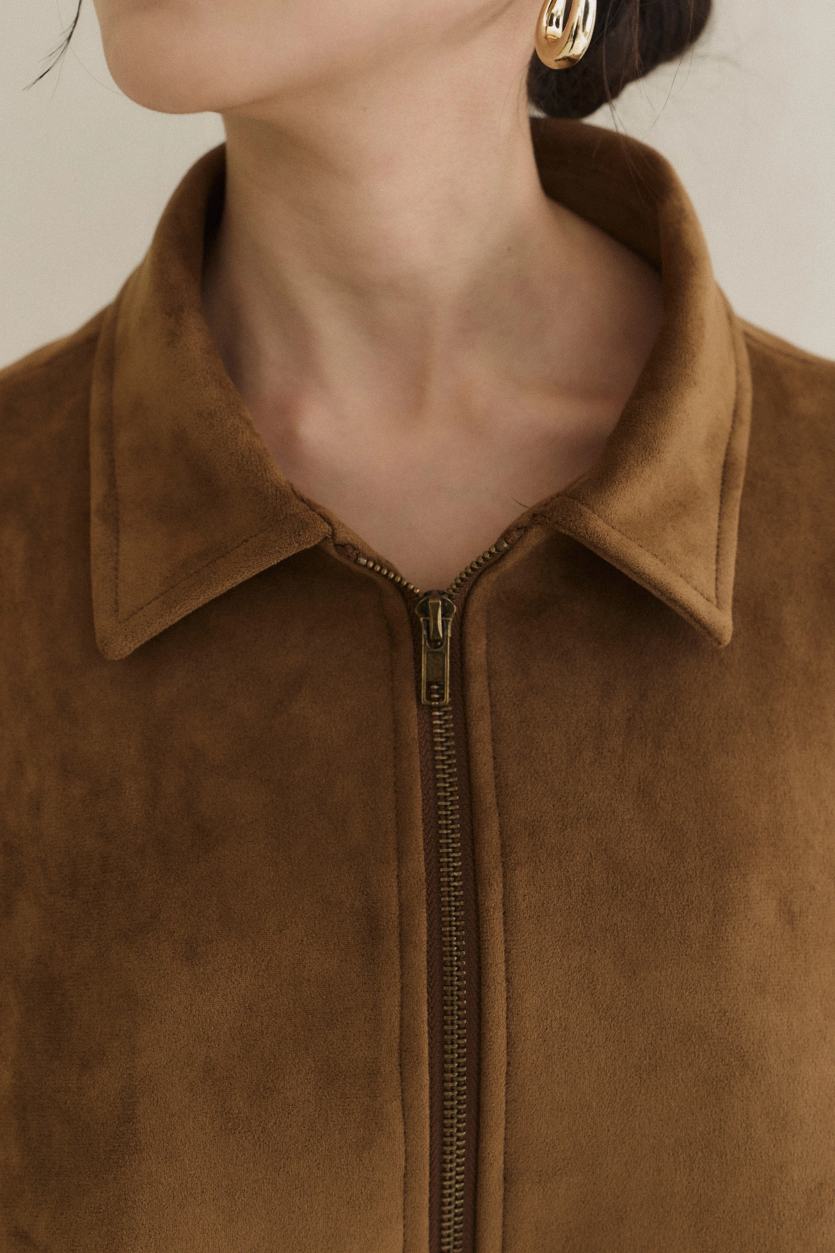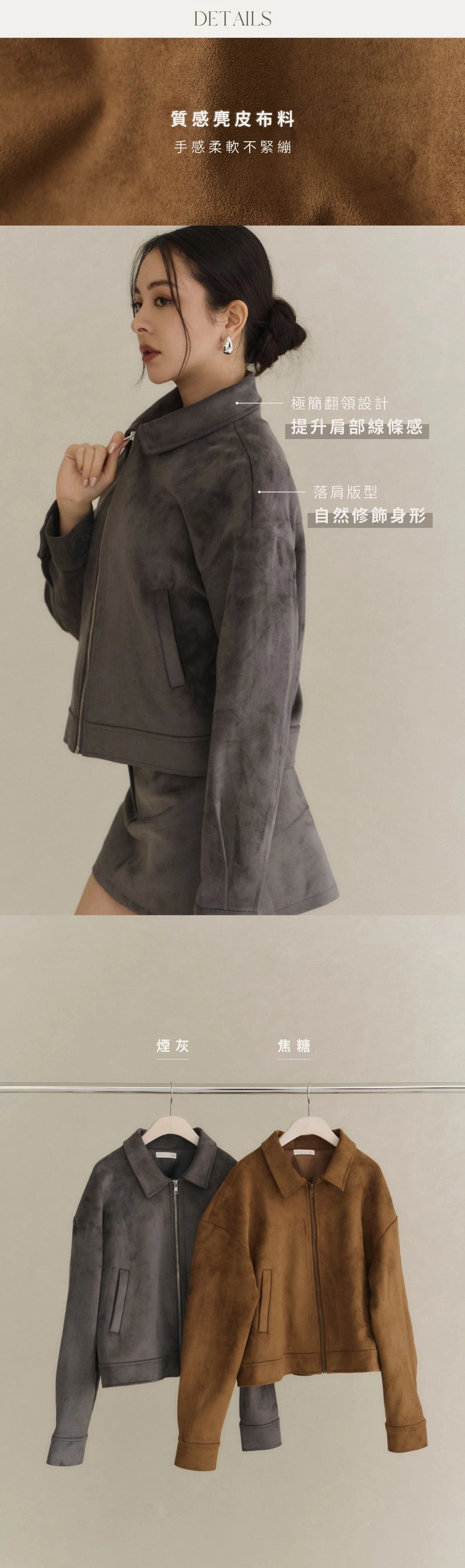 極簡翻領麂皮外套-焦糖