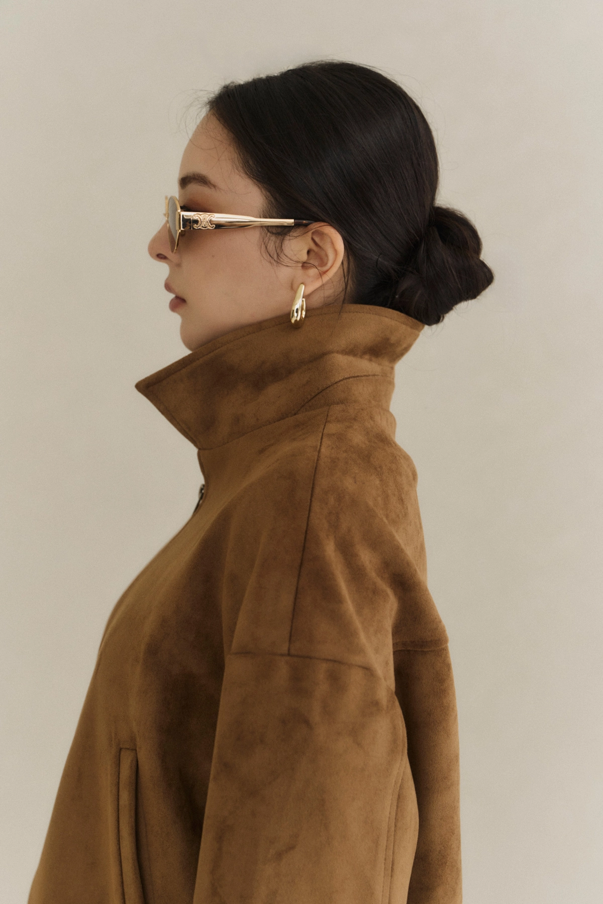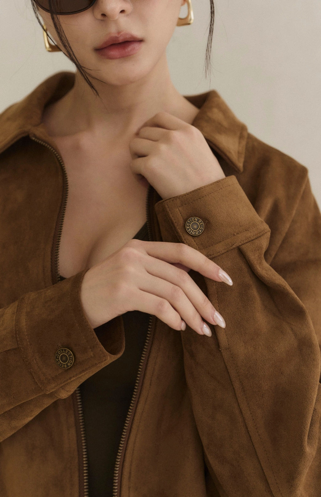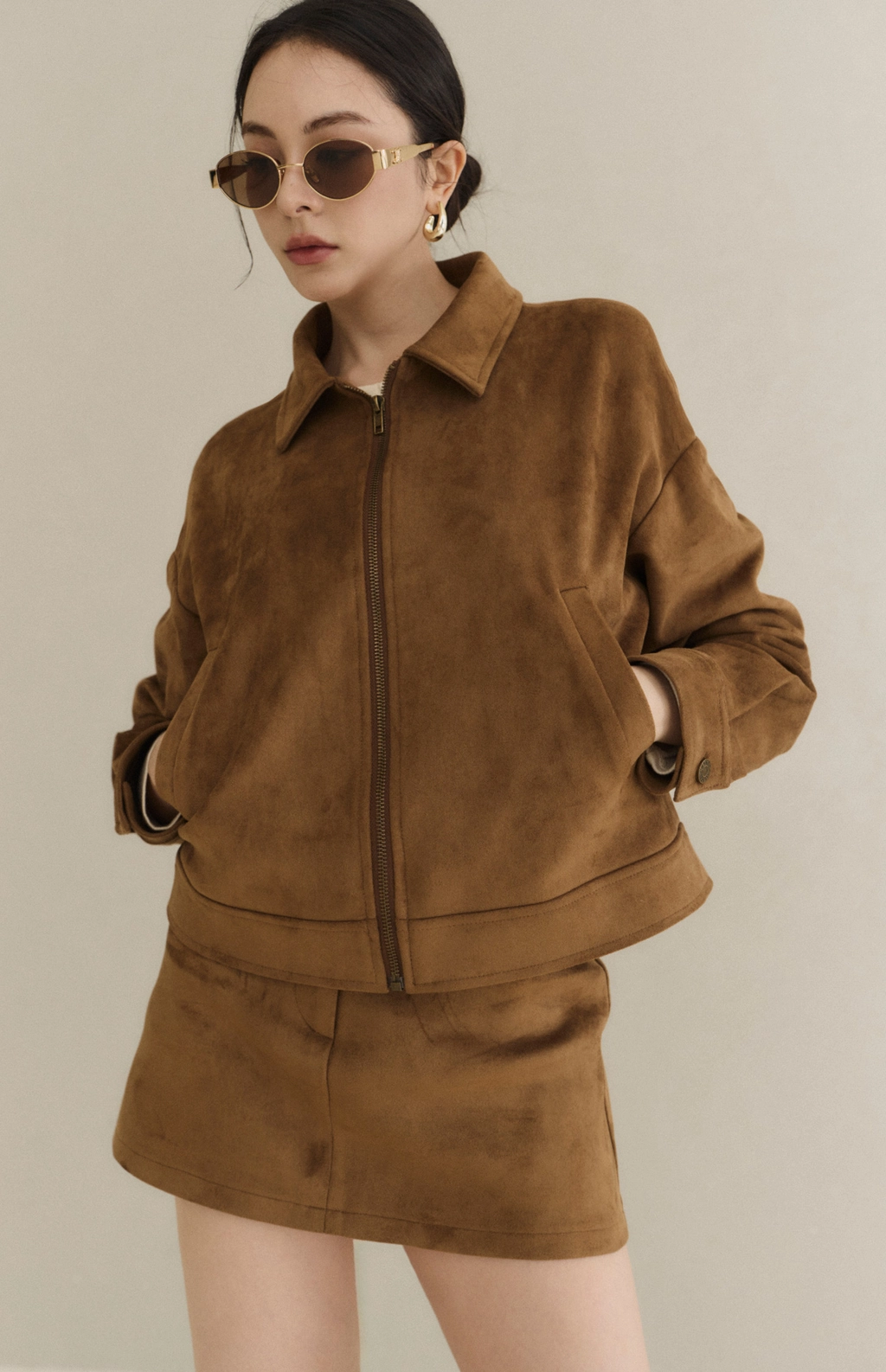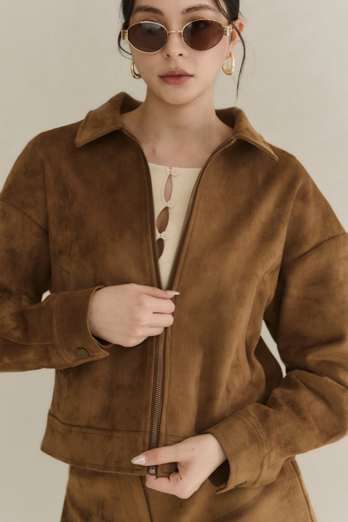 極簡翻領麂皮外套-焦糖
