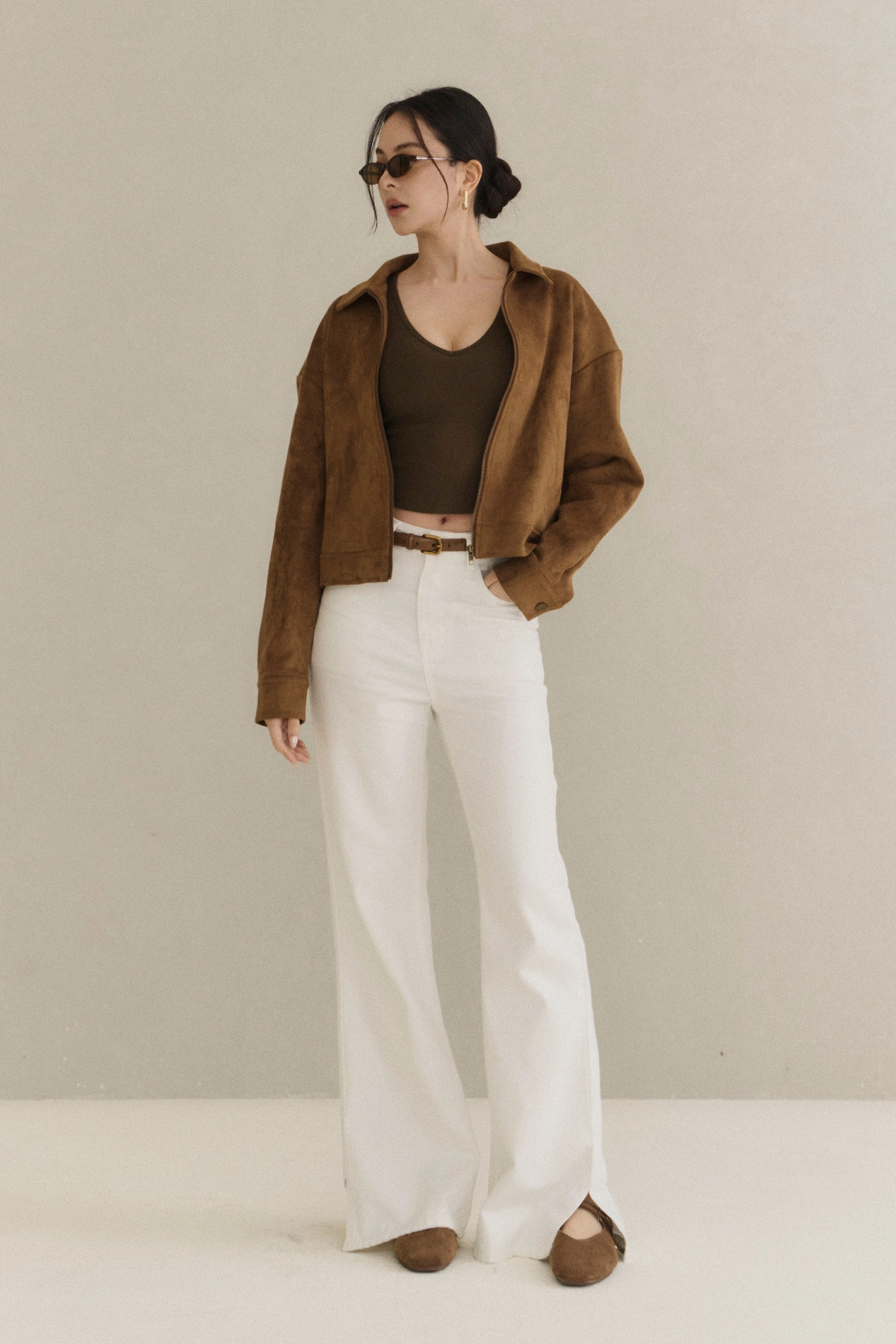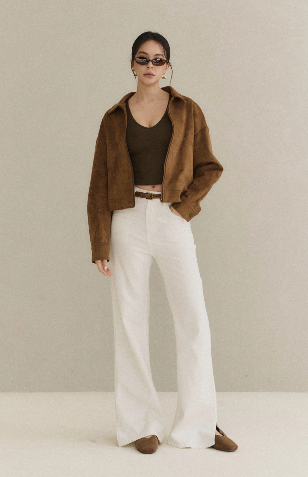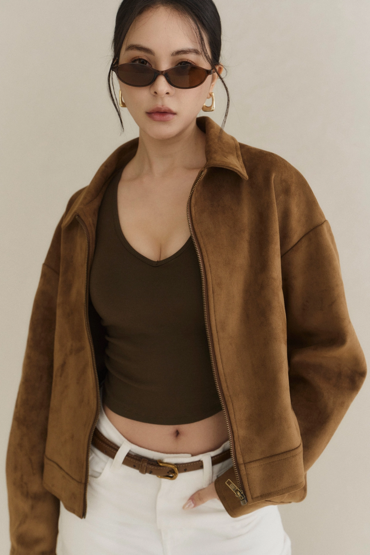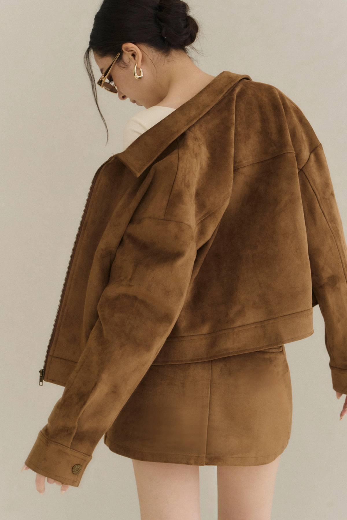 極簡翻領麂皮外套-焦糖