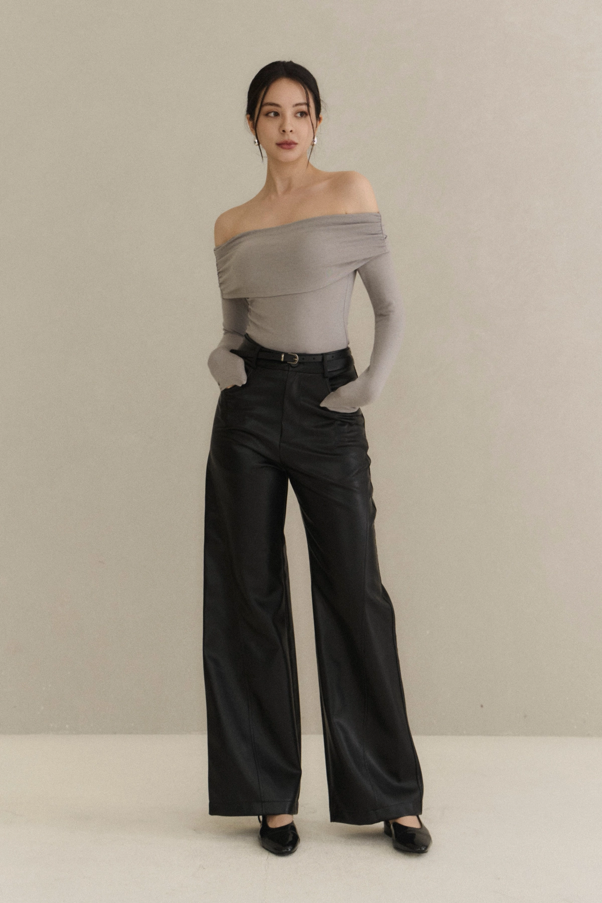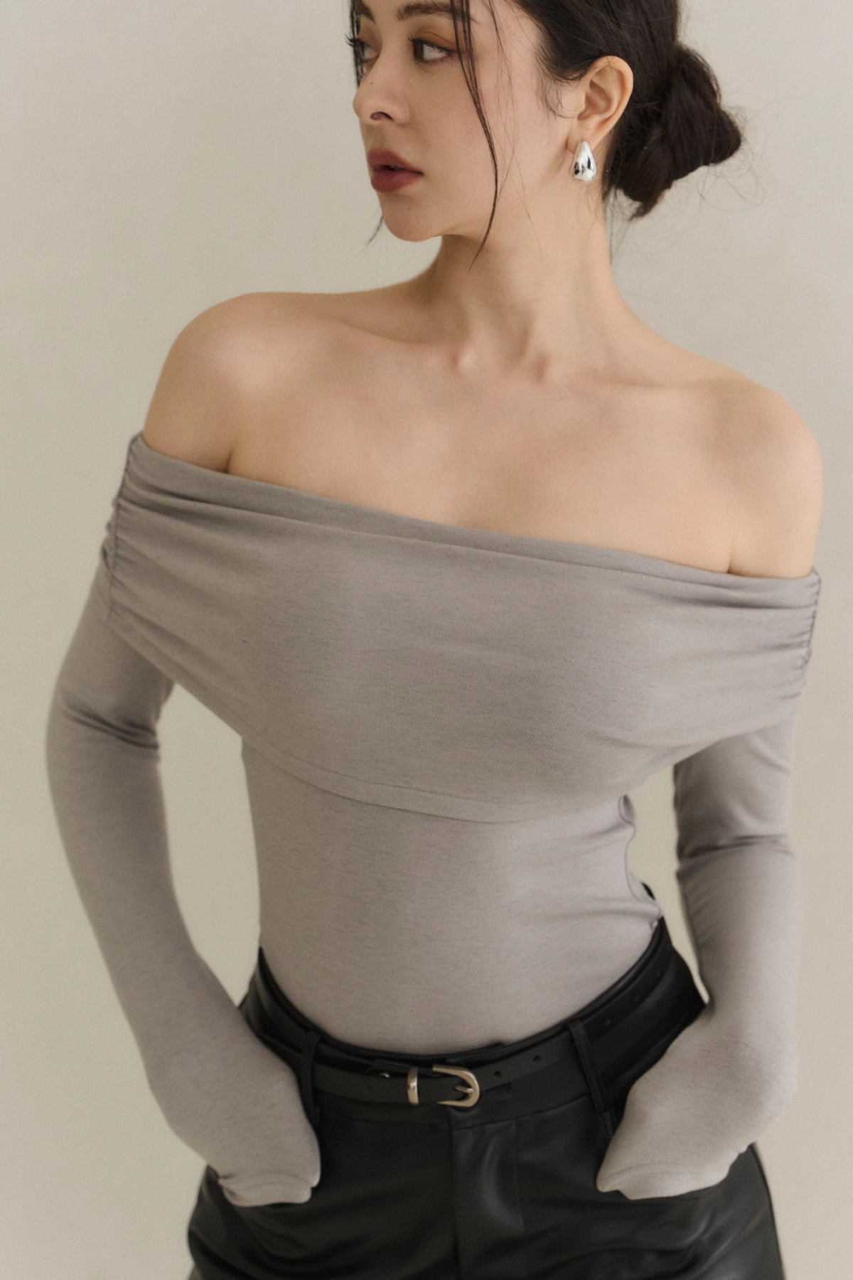 2.平口翻領設計,打造層次感、修飾肩線