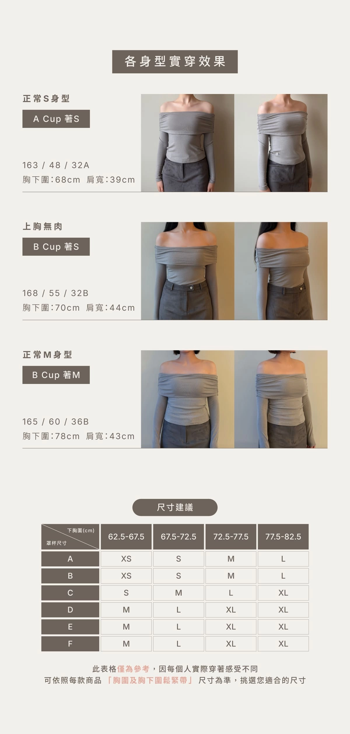 BRA TOP尺寸選購除了要參考罩杯外也需參考身高、體重