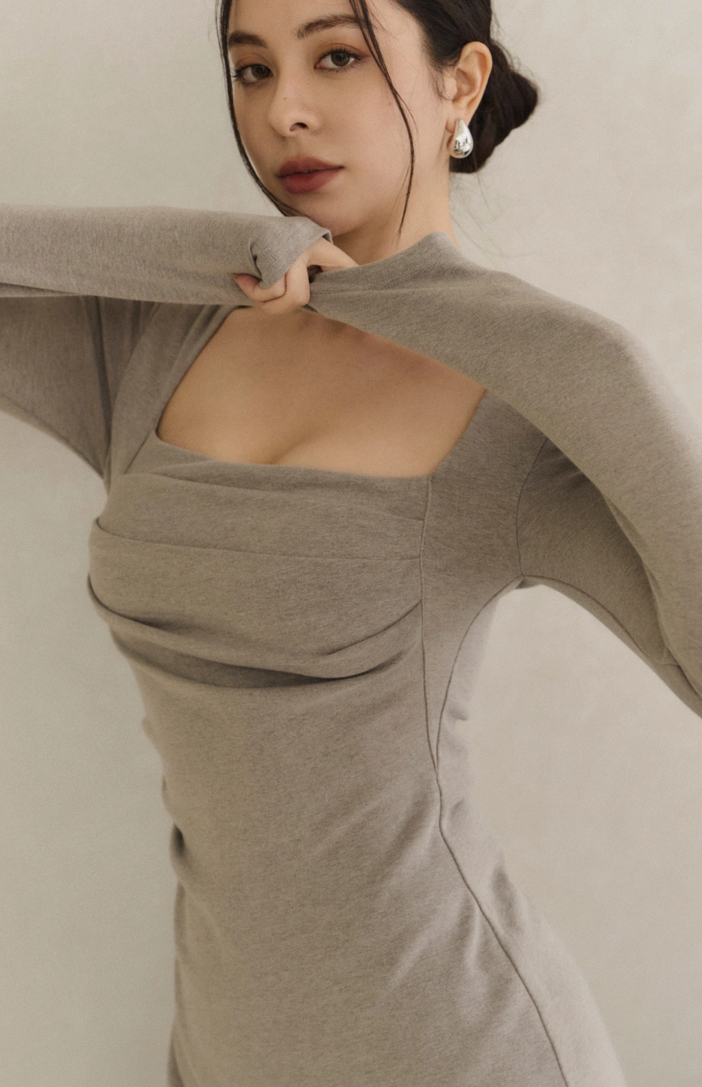 2.胸前抓皺設計,修飾胸型