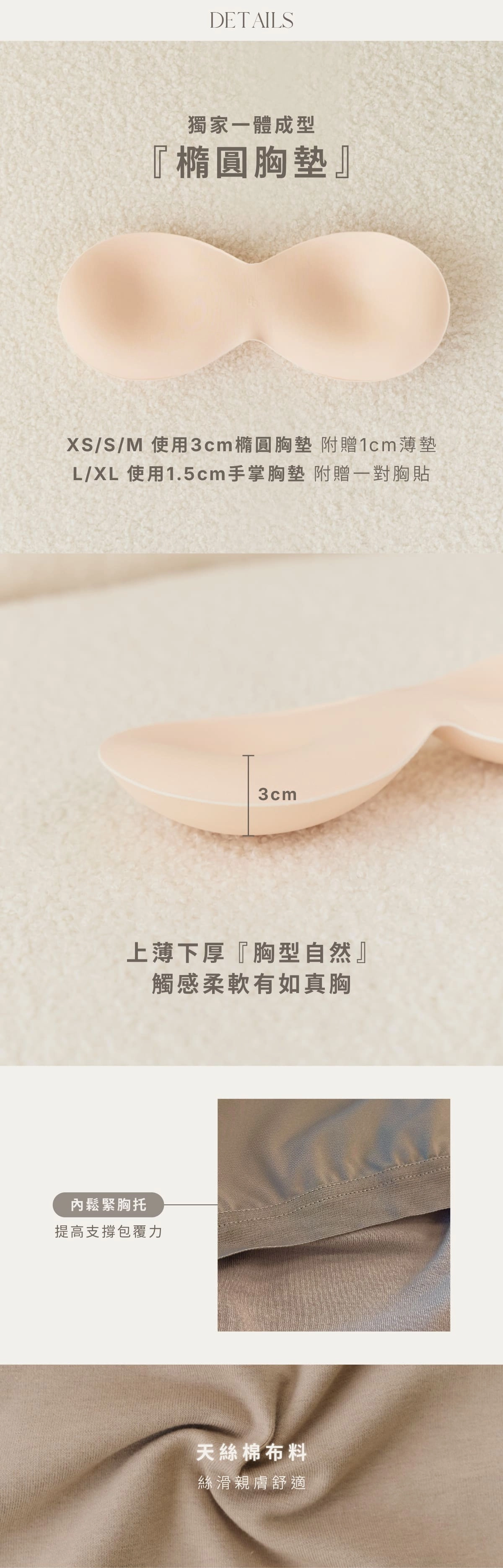 XS-M貝橘獨家打版3cm.1cm橢圓胸墊