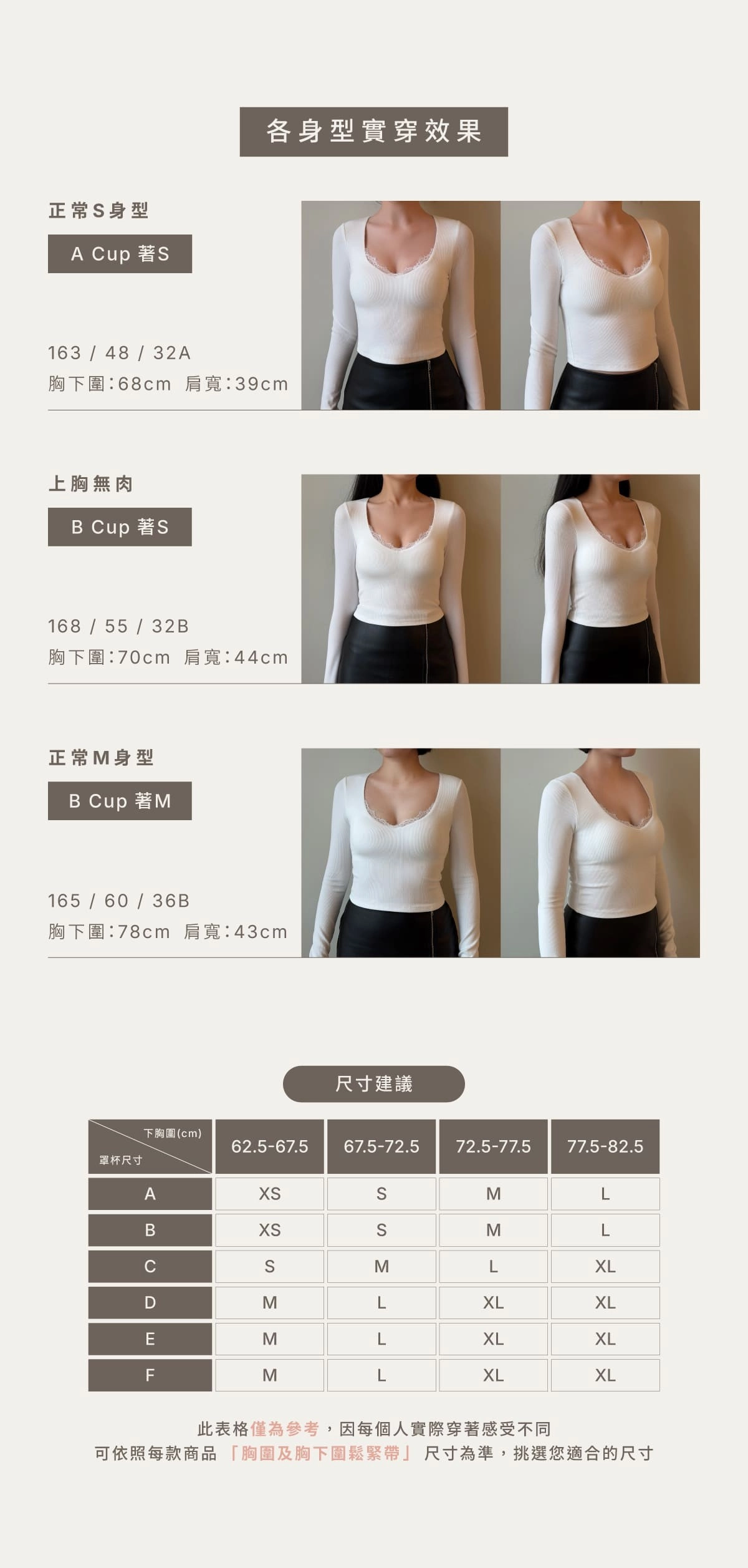 BRA TOP尺寸選購除了要參考罩杯外也需參考身高、體重