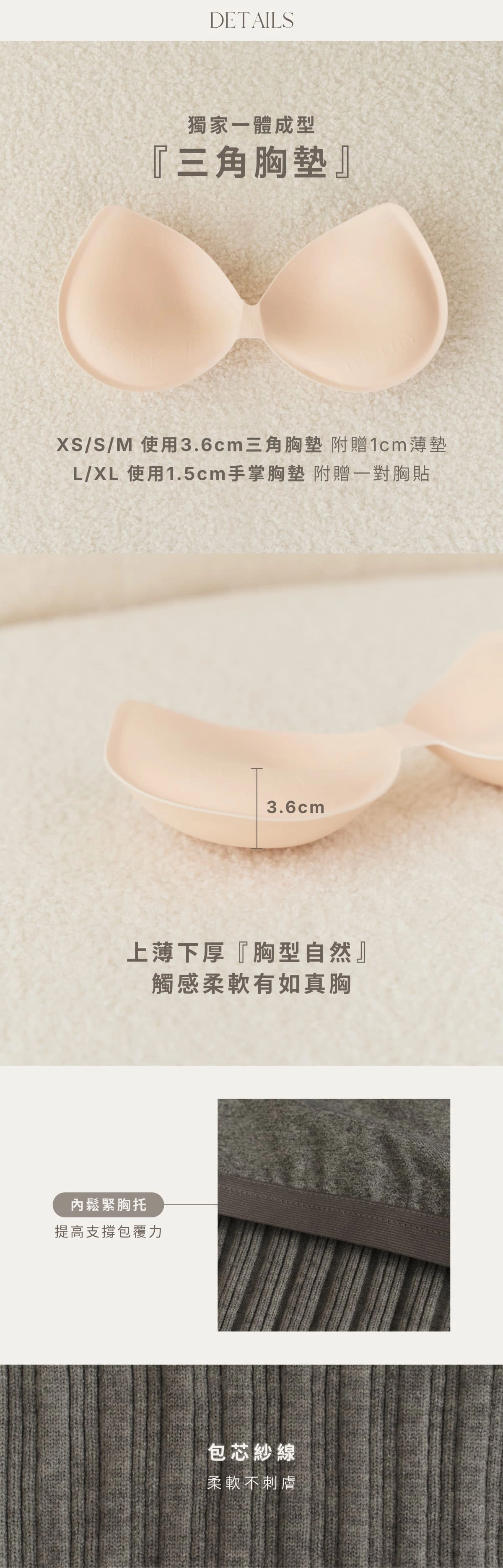 XS-M貝橘獨家打版3.6cm、1cm三角胸墊