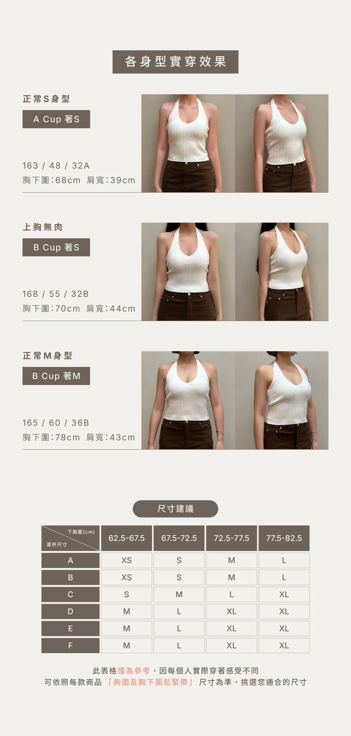 BRA TOP尺寸選購除了要參考罩杯外也需參考身高、體重