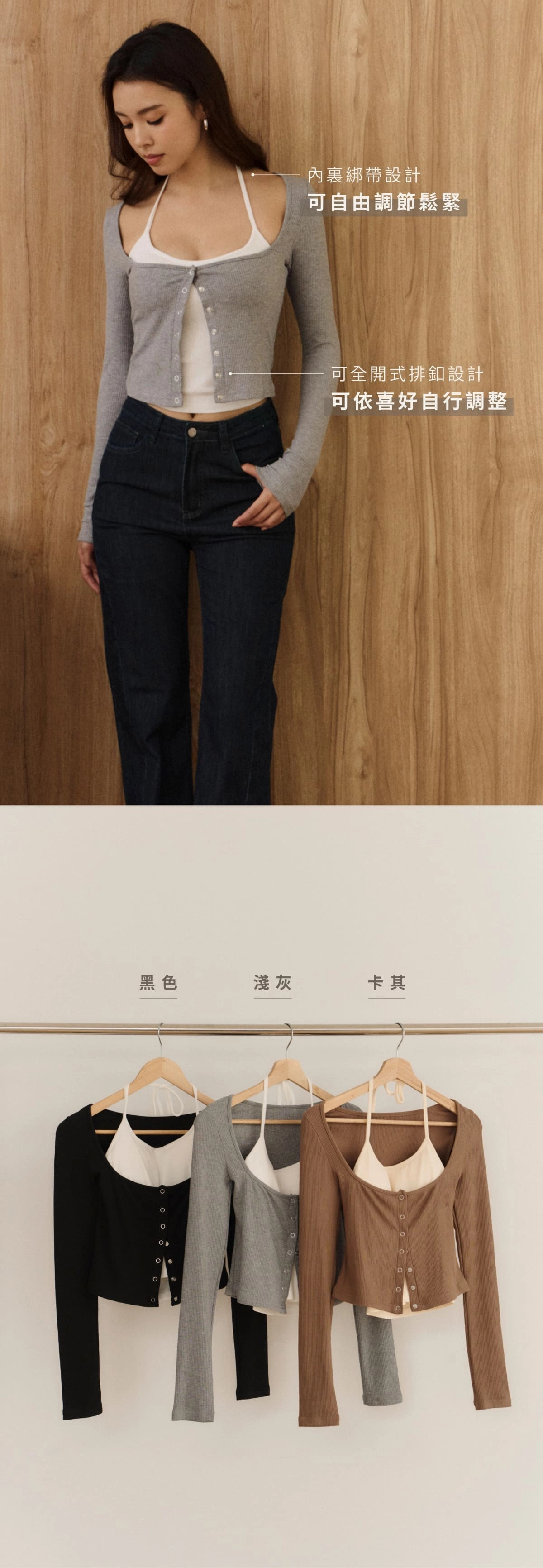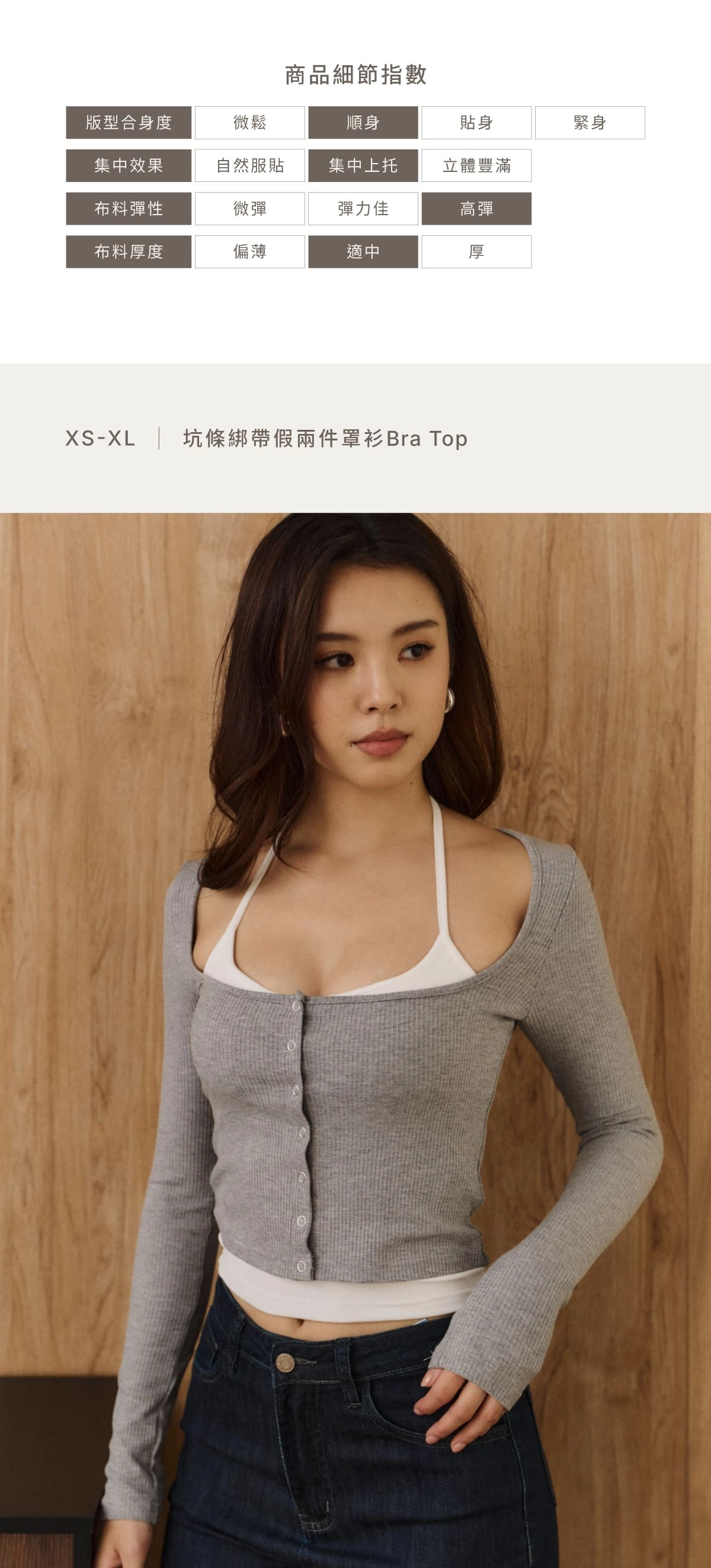 坑條綁帶假兩件罩衫Bra Top-淺灰