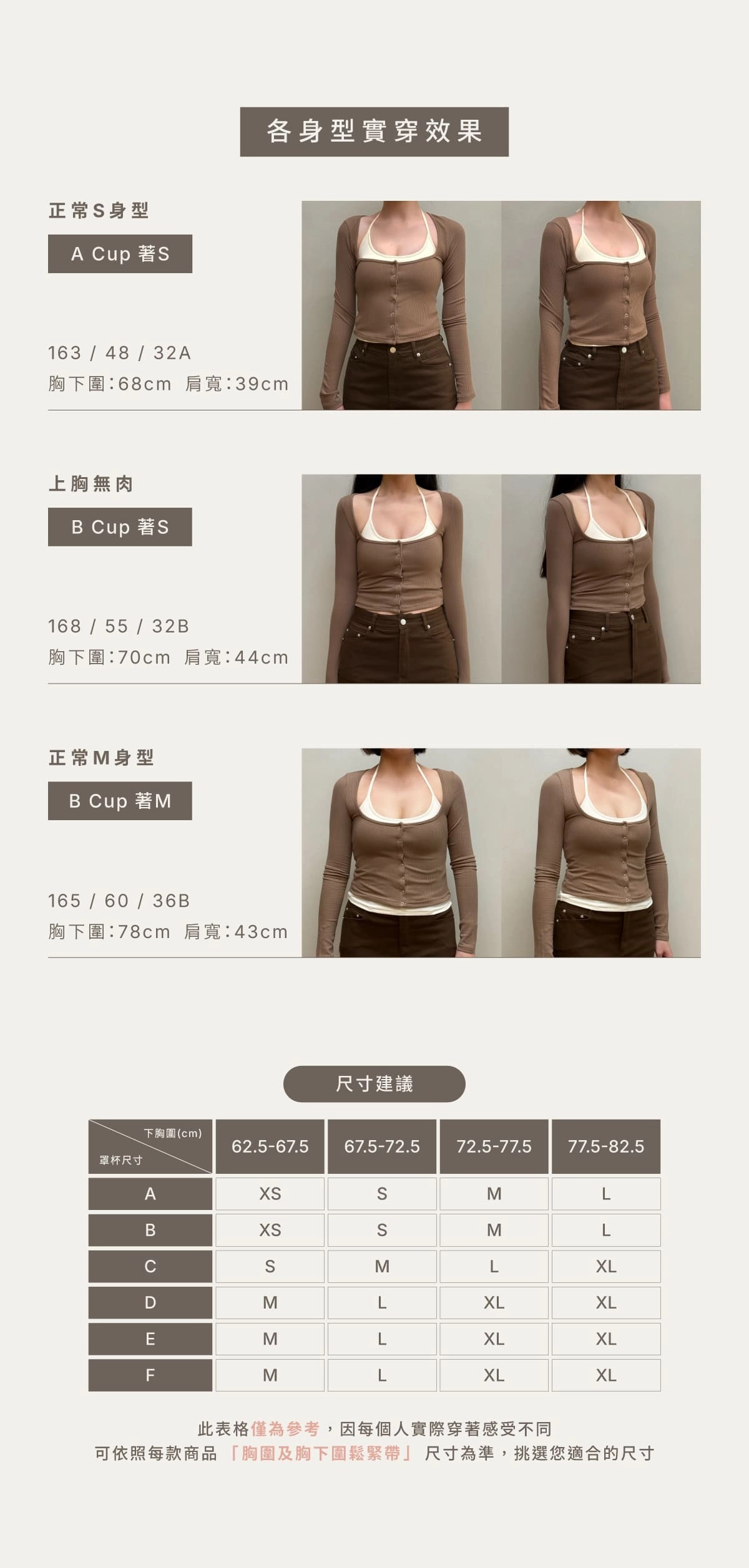 BRA TOP尺寸選購除了要參考罩杯外也需參考身高、體重