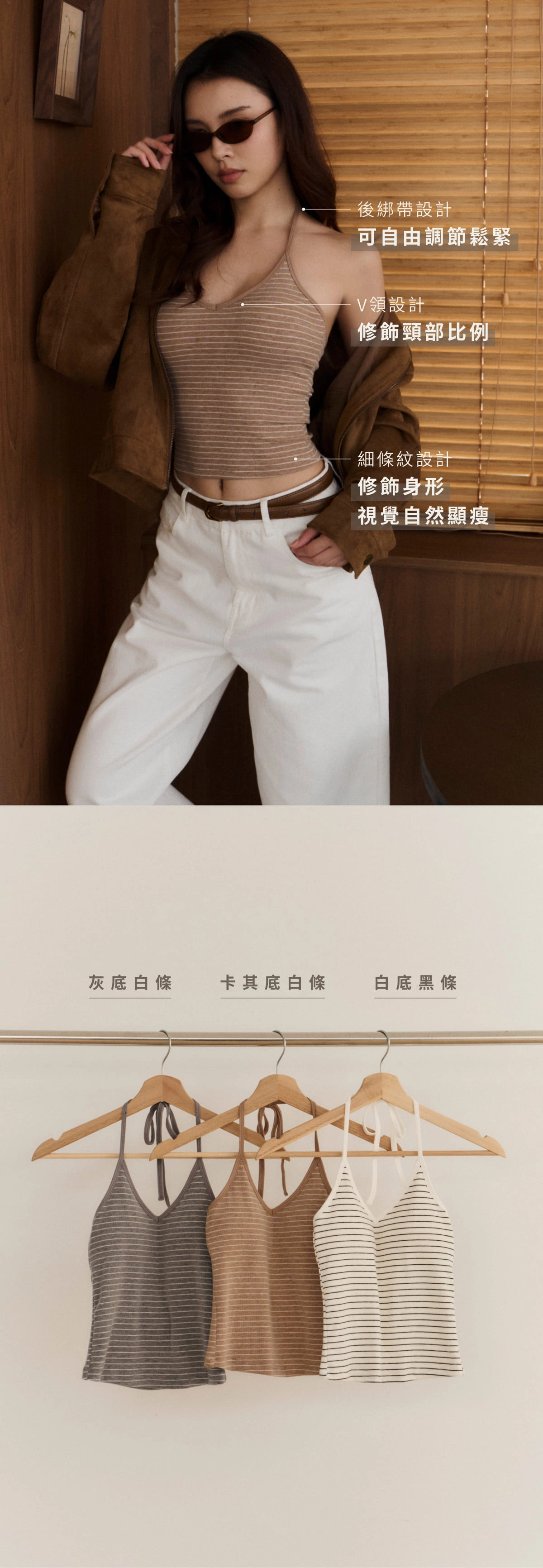 卡其底白條/白底黑條/灰底白條 共三色