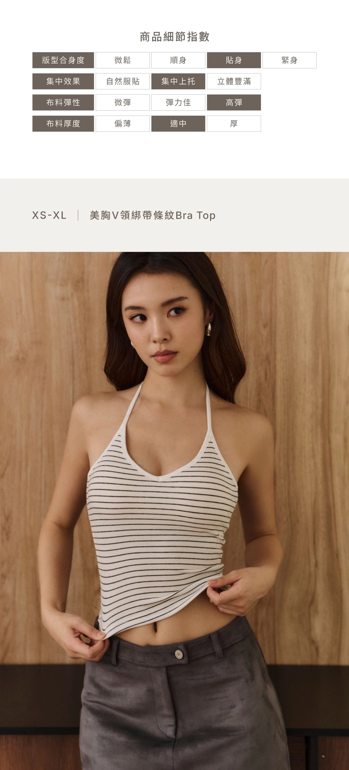▲為呈現胸型集中效果,本品牌版型較貼身。