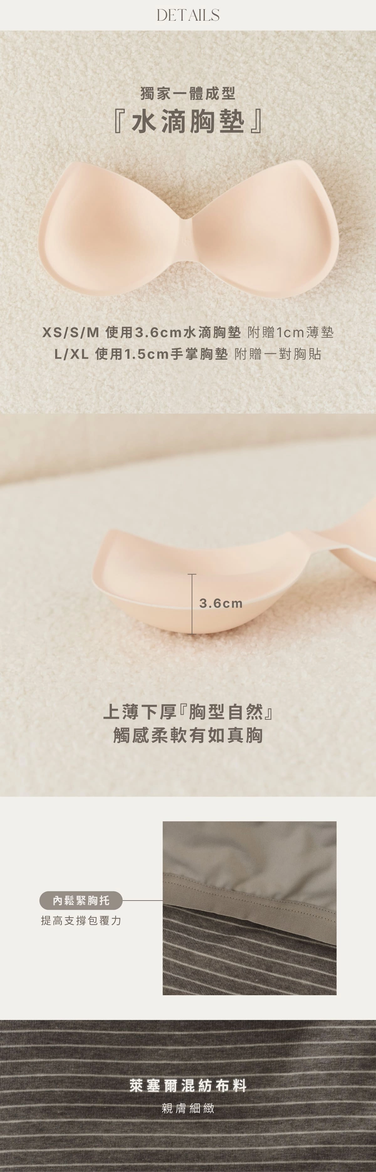 XS-M貝橘獨家打版3.6cm、1cm水滴胸墊