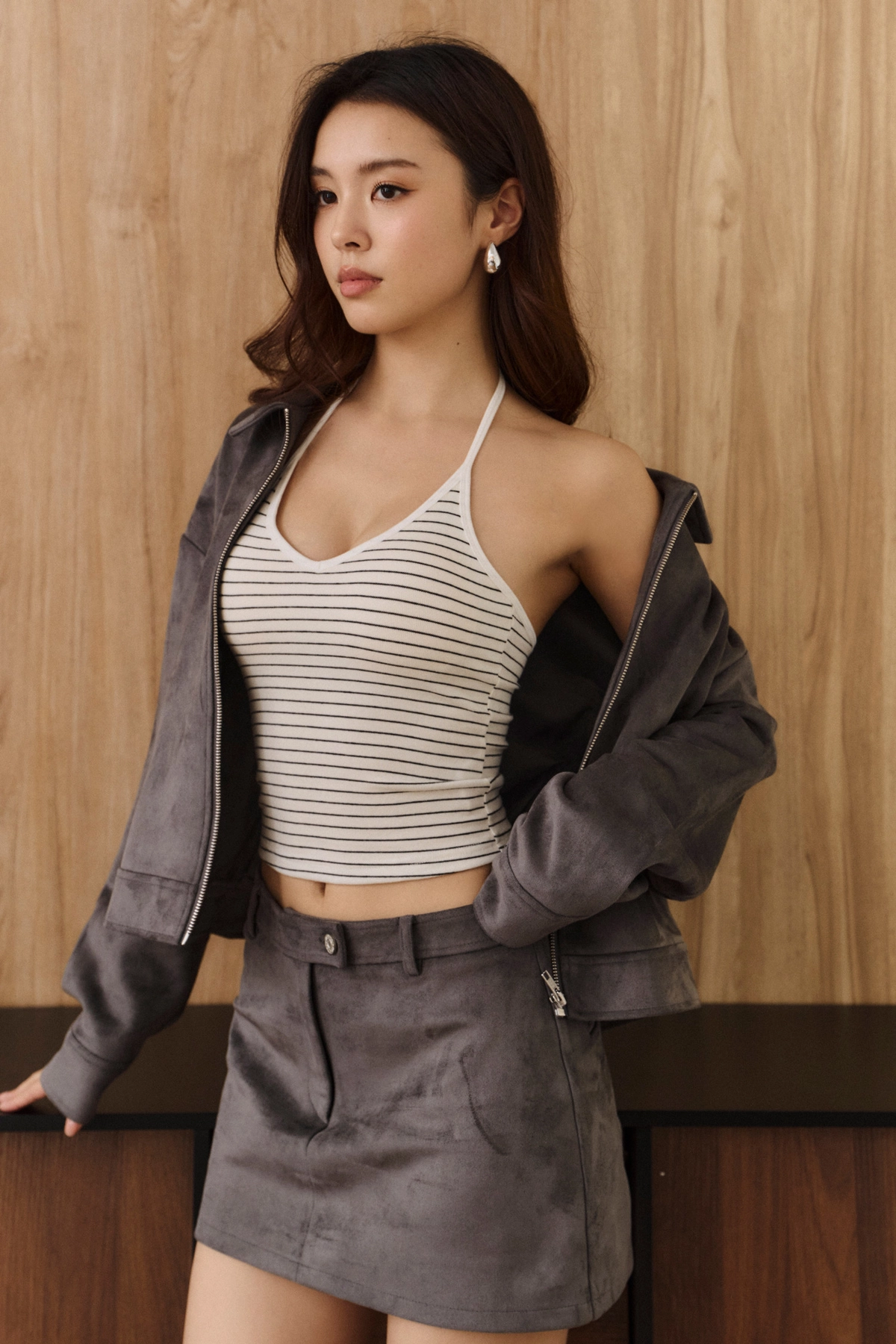 3.細條紋設計修飾身形、視覺自然顯瘦