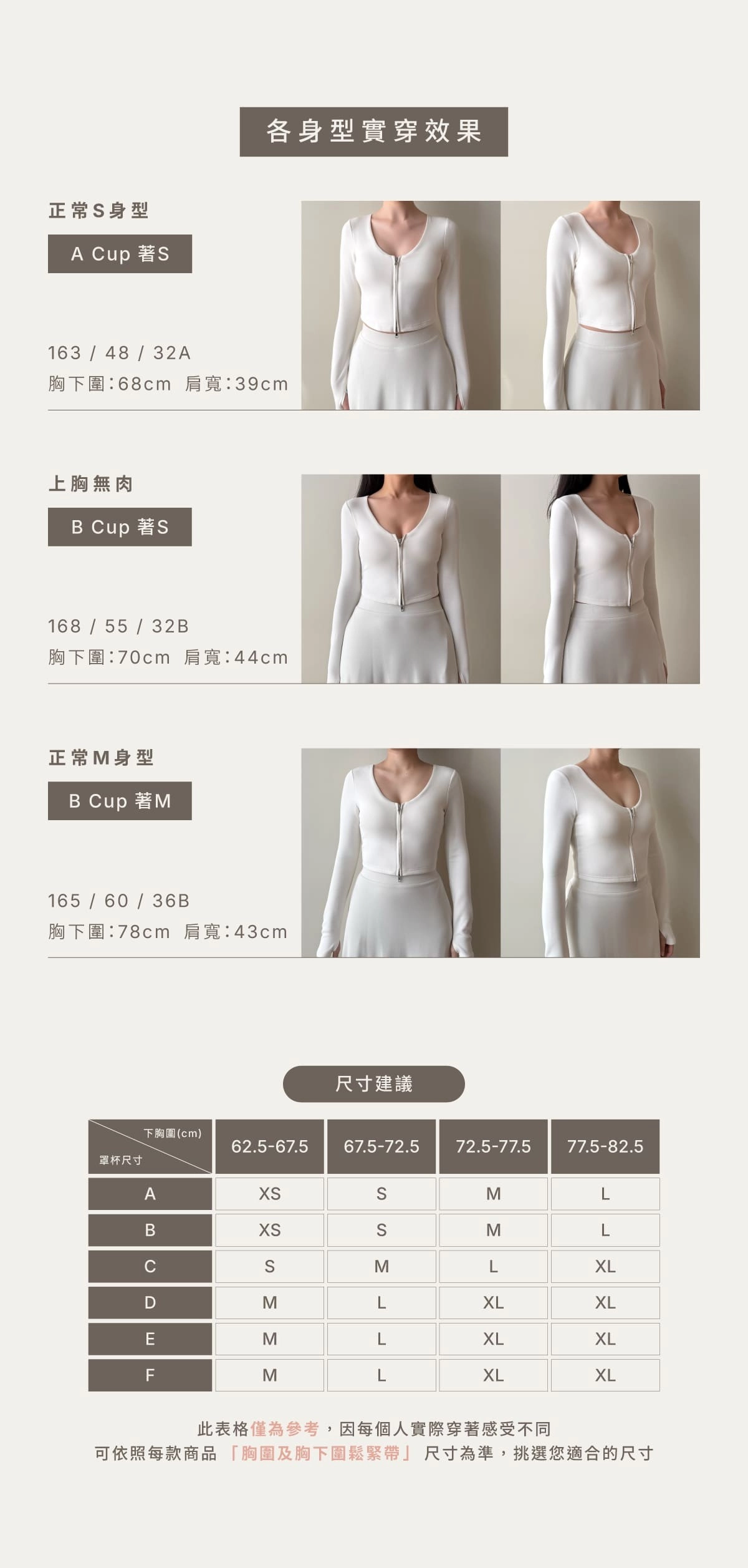 BRA TOP尺寸選購除了要參考罩杯外也需參考身高、體重