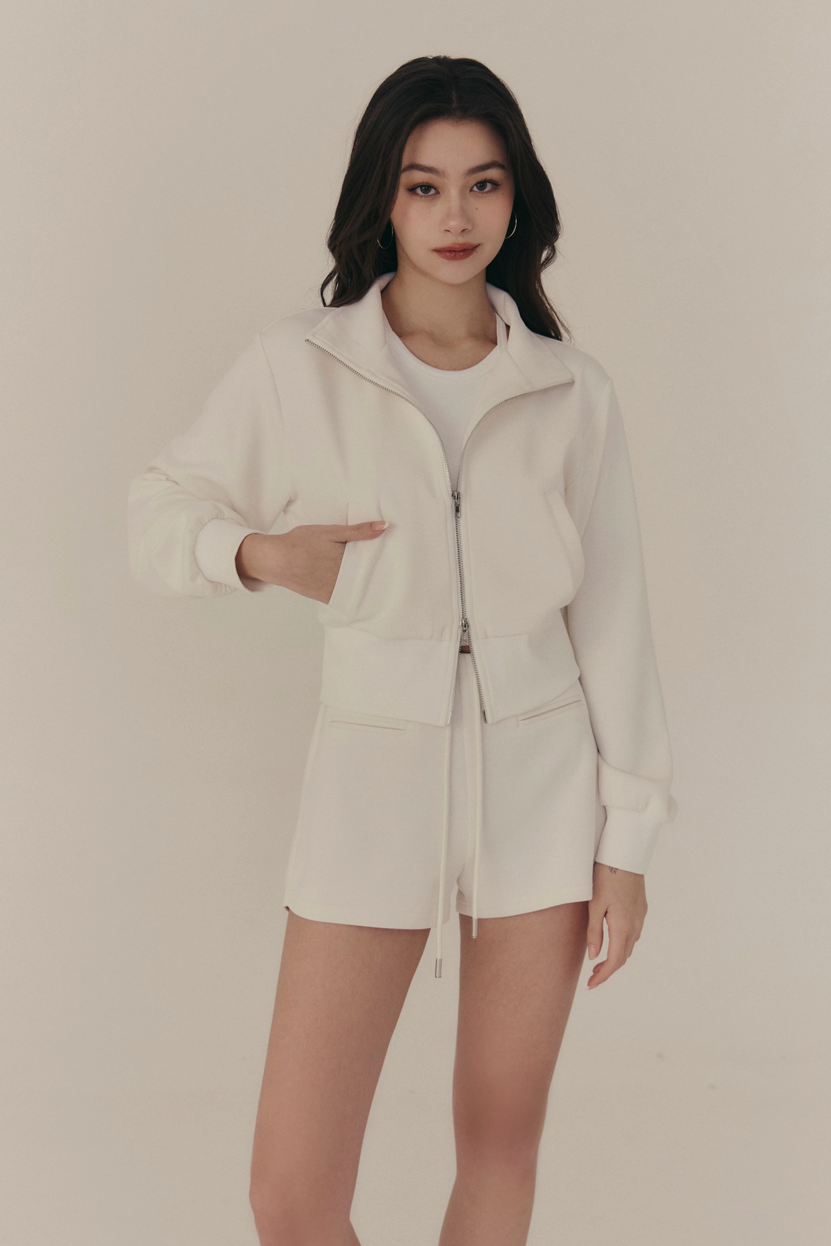 2.下擺收腰羅紋設計,凸顯腰部曲線