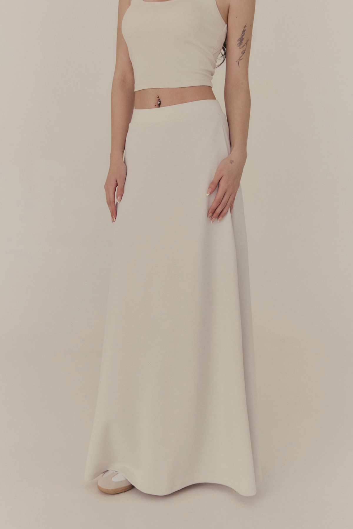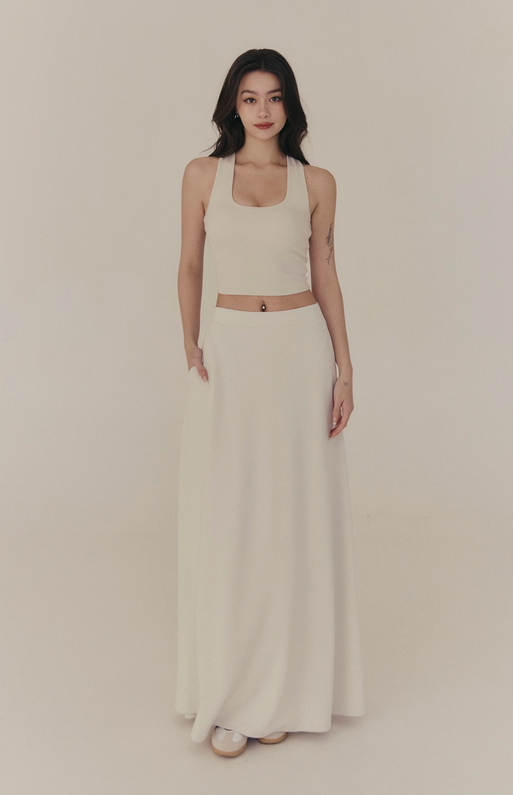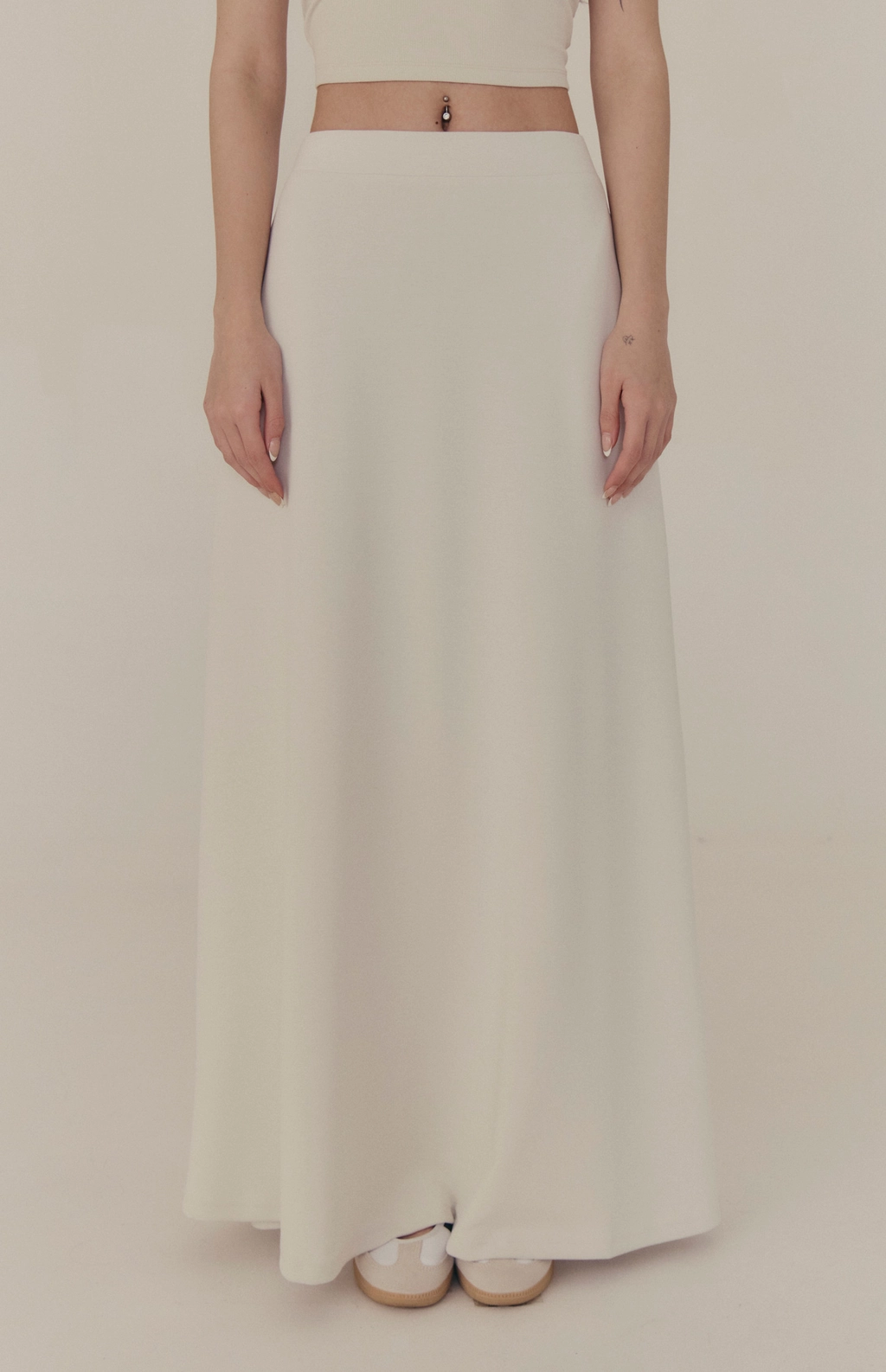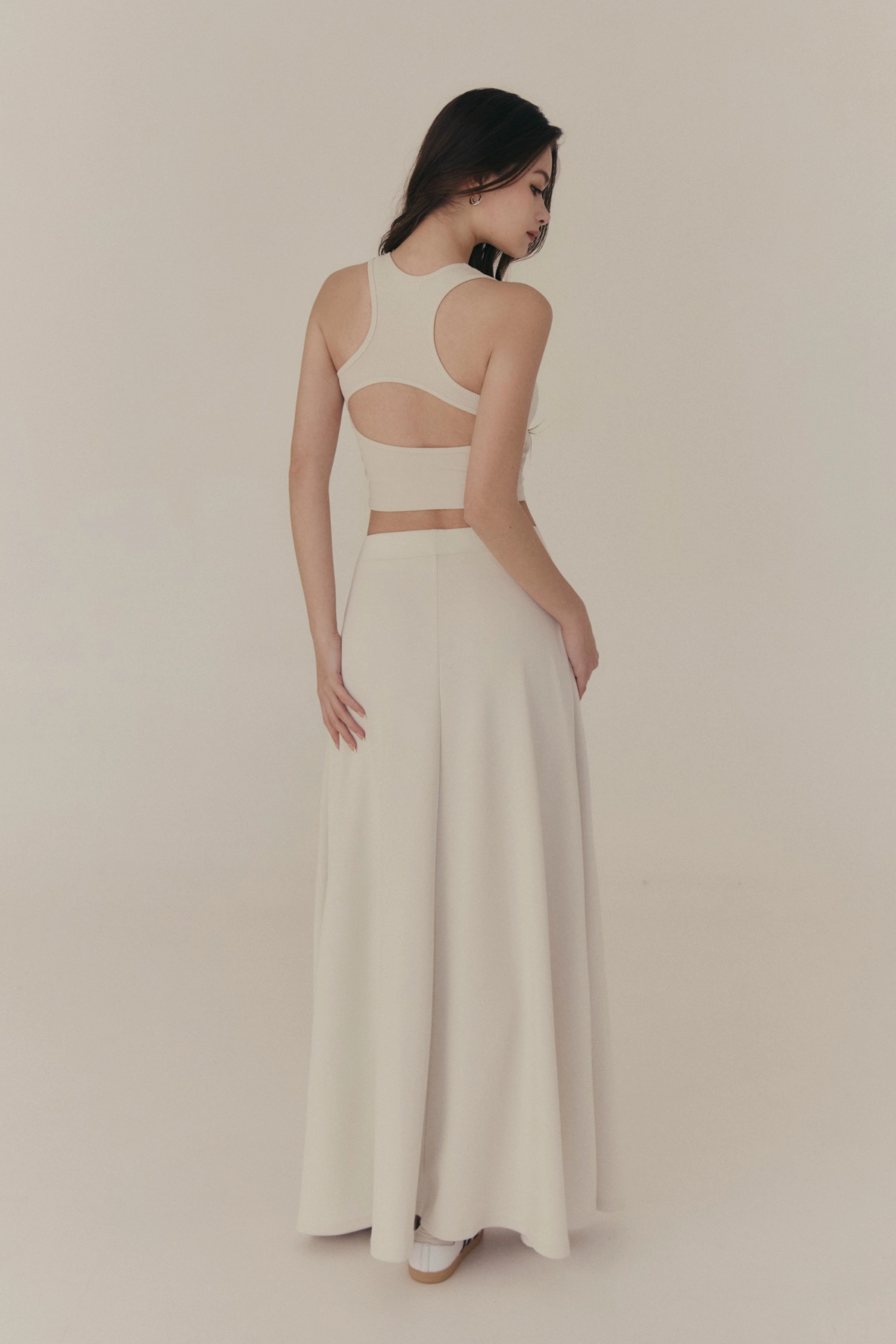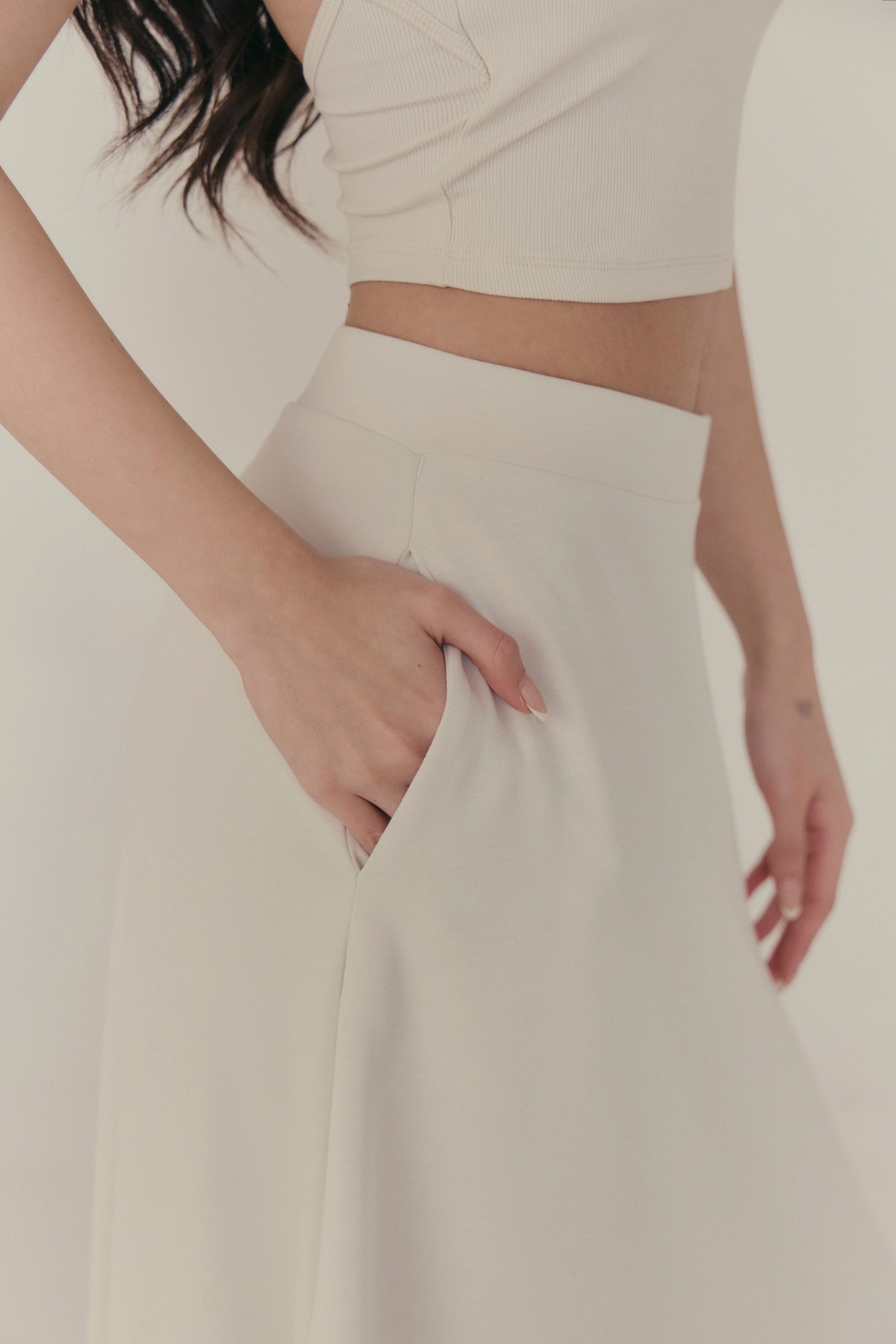 雲感彈力傘擺長裙-淺灰