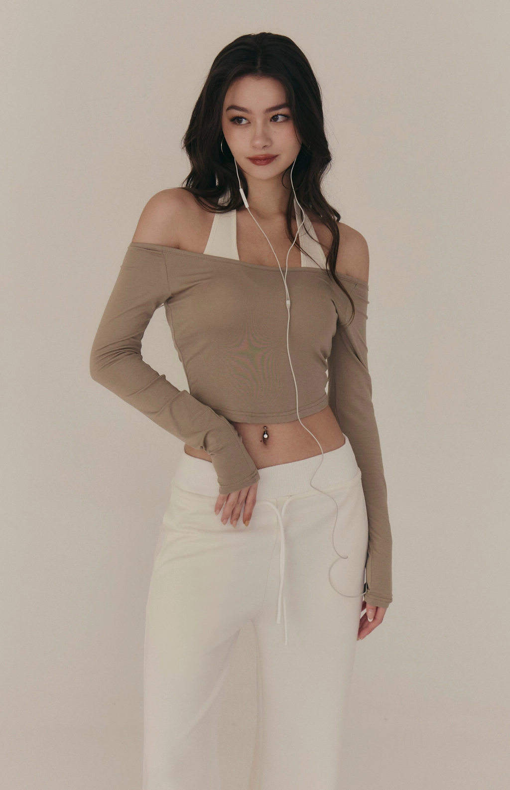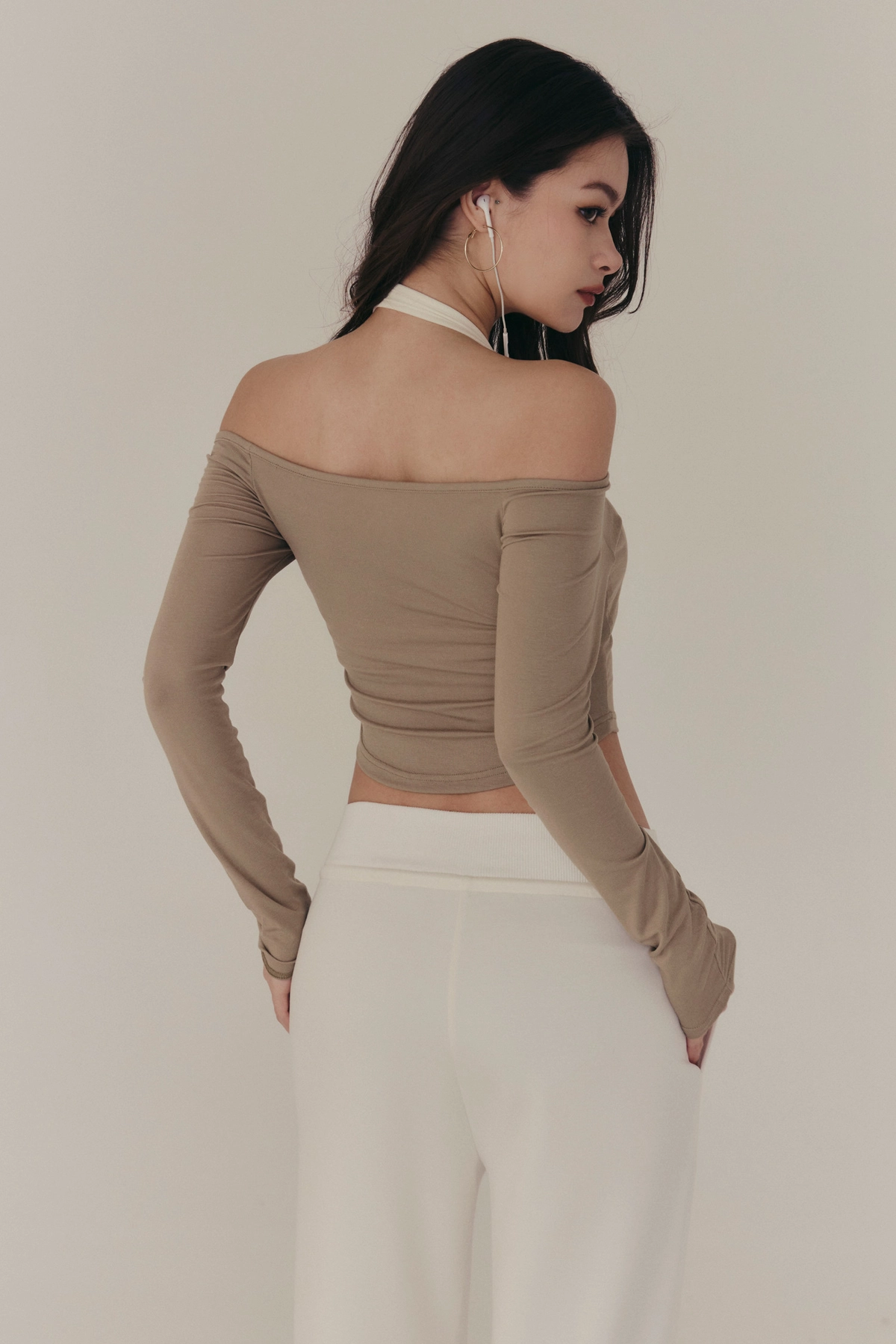 3.一字領x繞脖剪裁修飾鎖骨、肩頸線條