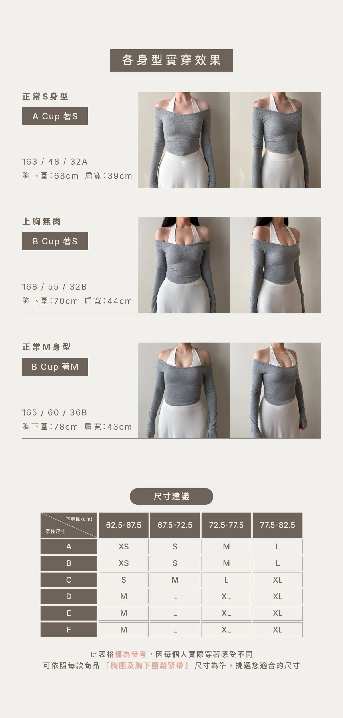 BRA TOP尺寸選購除了要參考罩杯外也需參考身高、體重