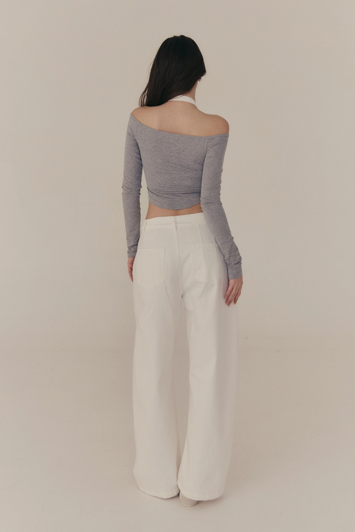 3.一字領x繞脖剪裁修飾鎖骨、肩頸線條