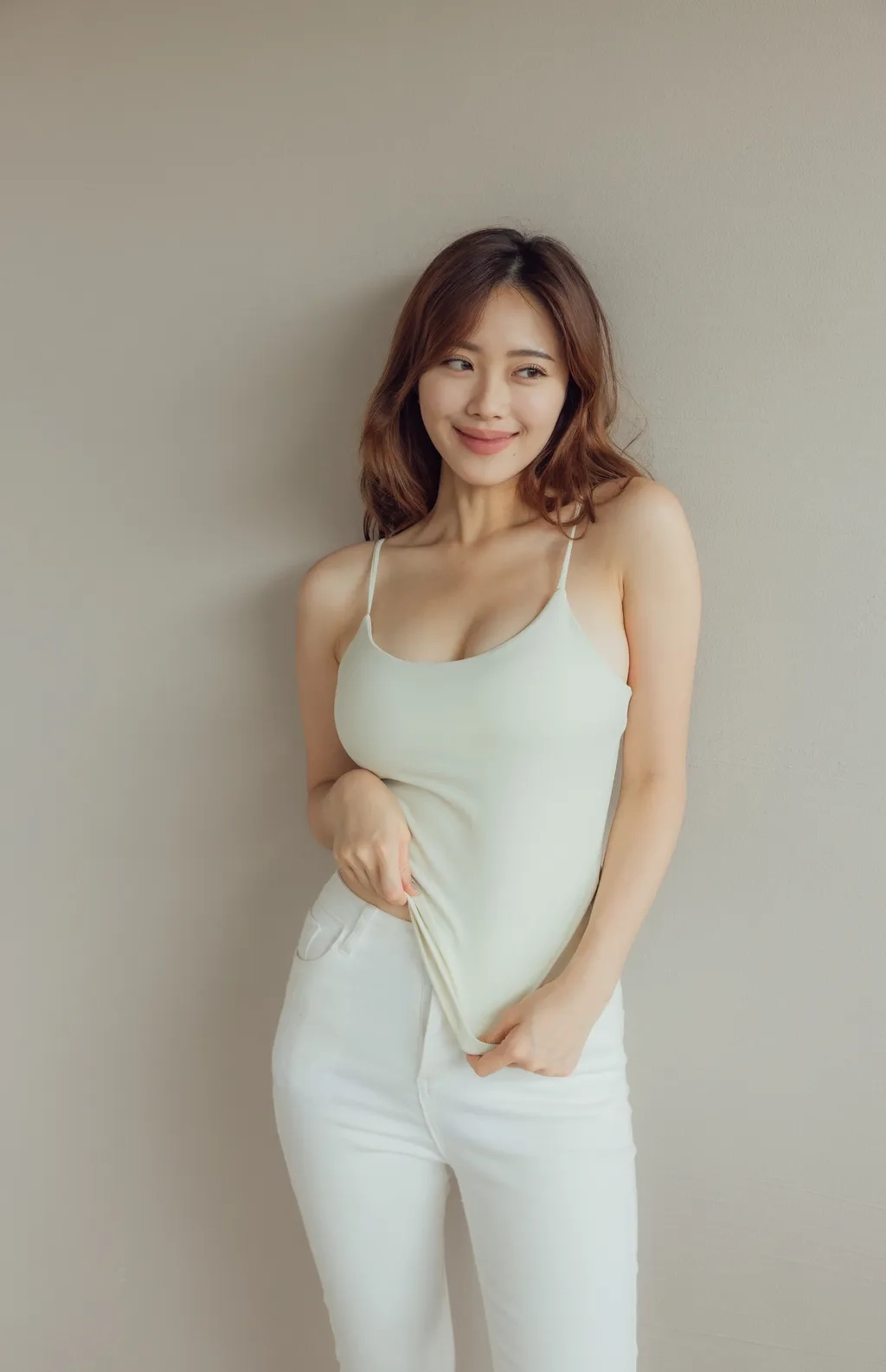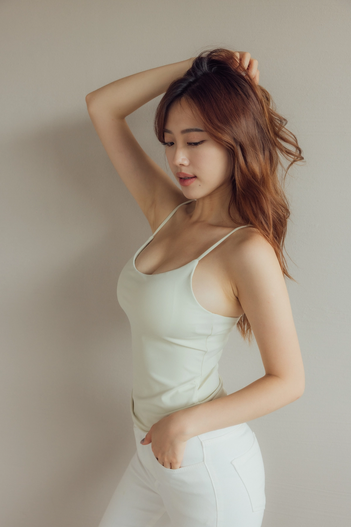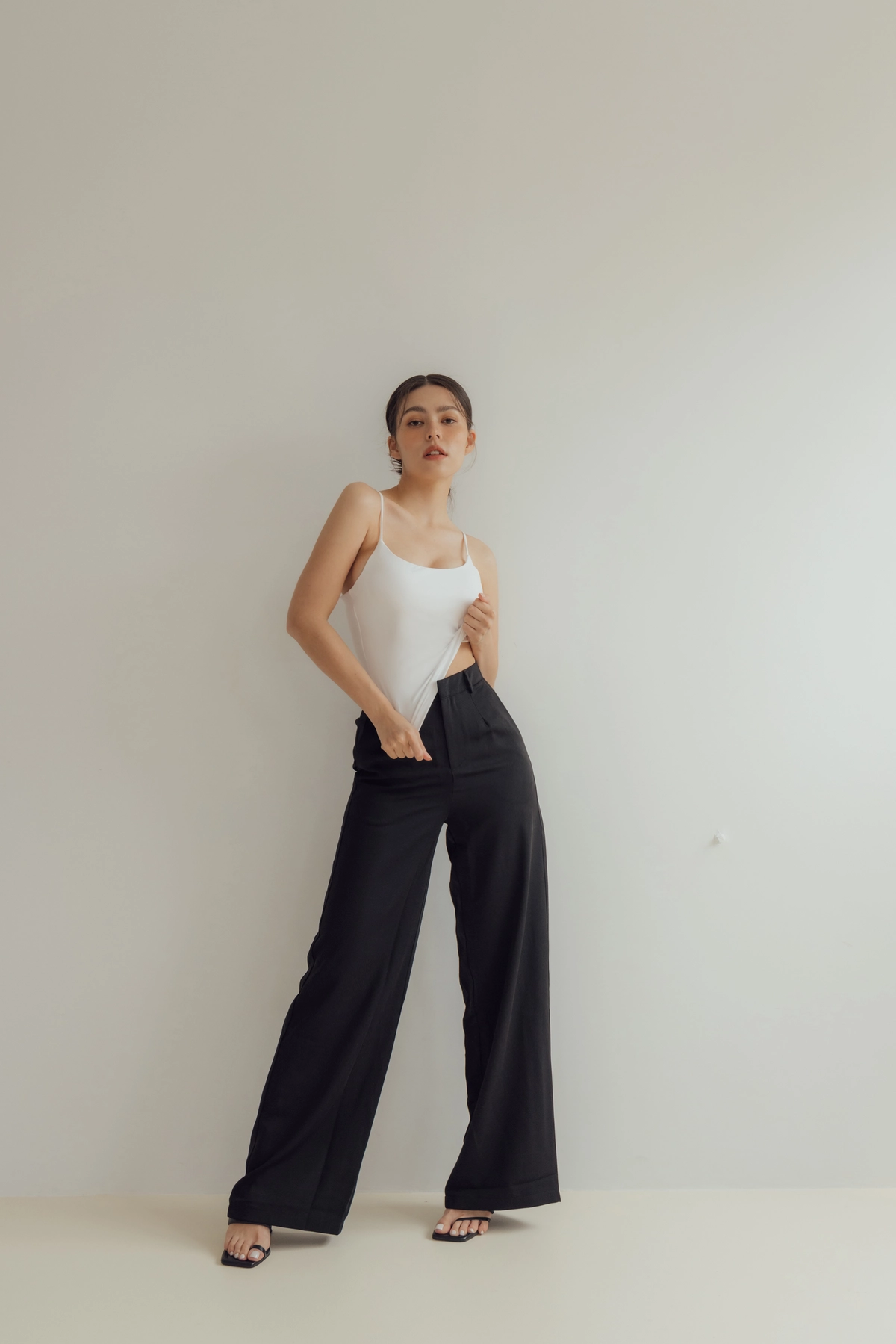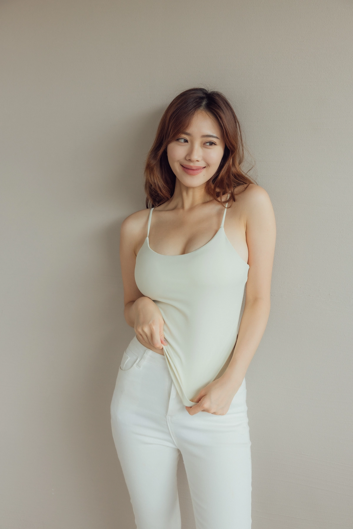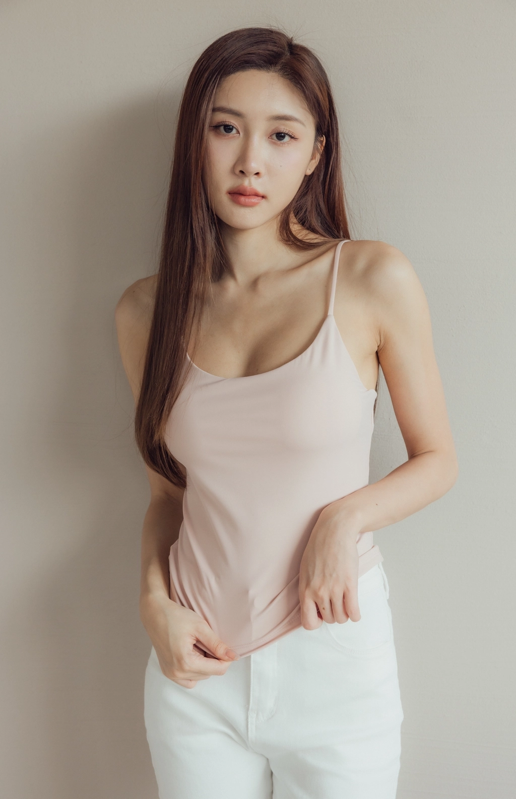 此款因布料較有彈性,建議比正常版型拿小一尺寸
