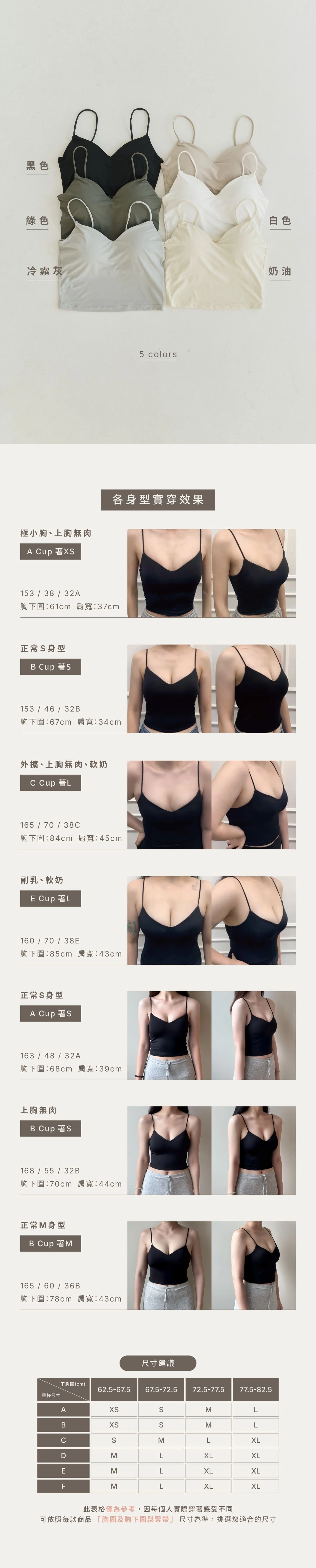 BRA TOP尺寸選購除了要參考罩杯外也需參考身高、體重
