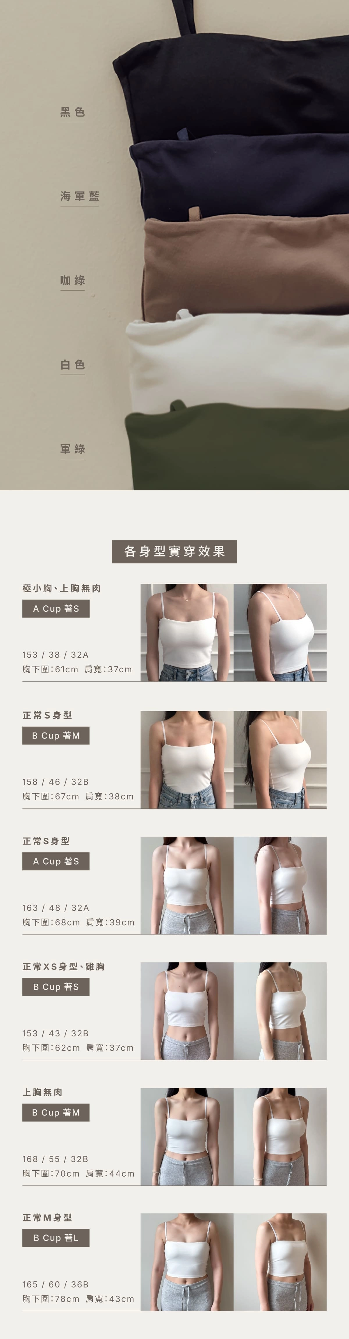 BRA TOP尺寸選購除了要參考罩杯外也需參考身高、體重
