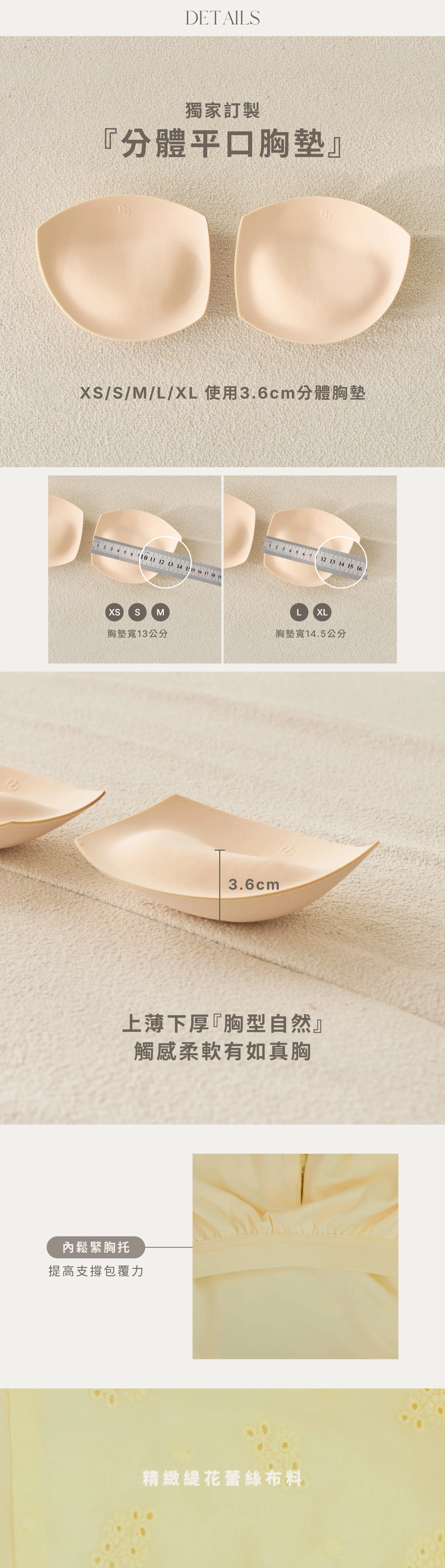 XS-XL貝橘獨家打版3.6cm分體平口胸墊