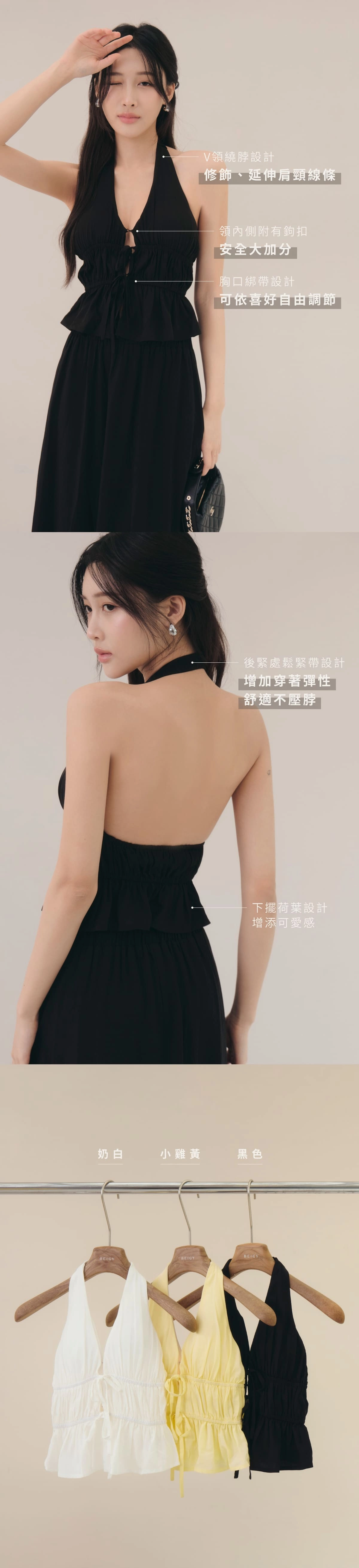 2.V領繞脖設計,修飾拉長肩頸線條