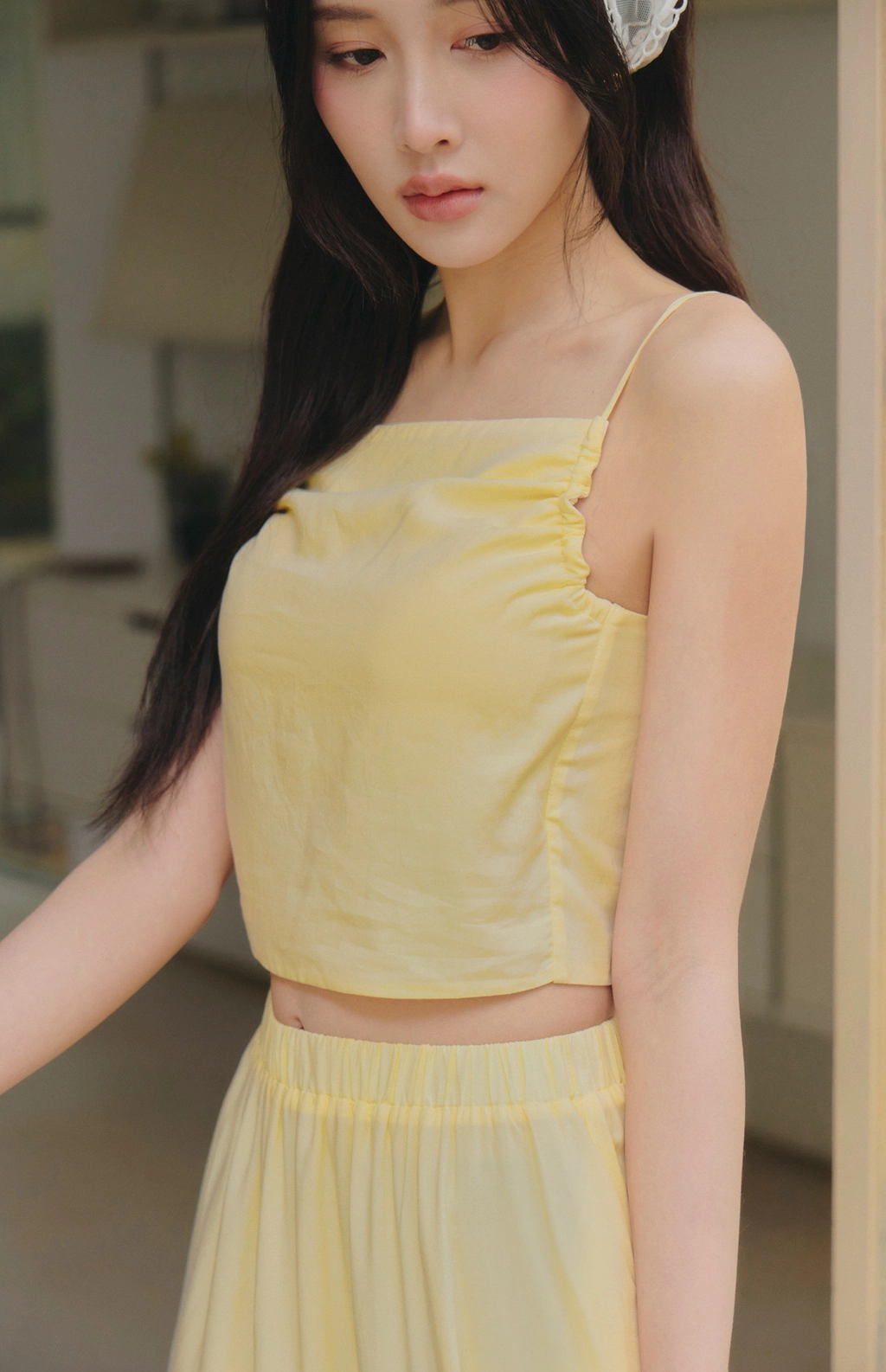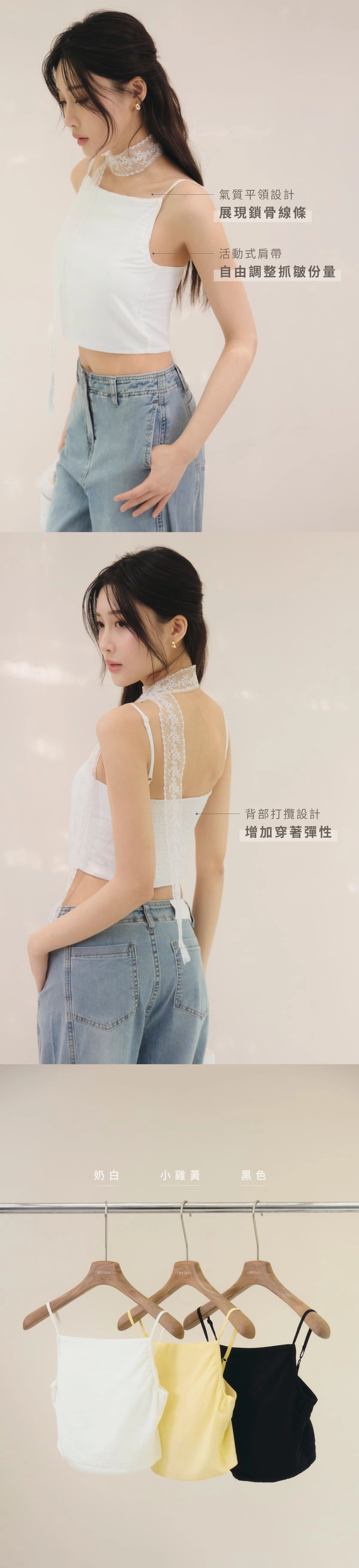2.平口領口設計,氣質展現鎖骨線條
