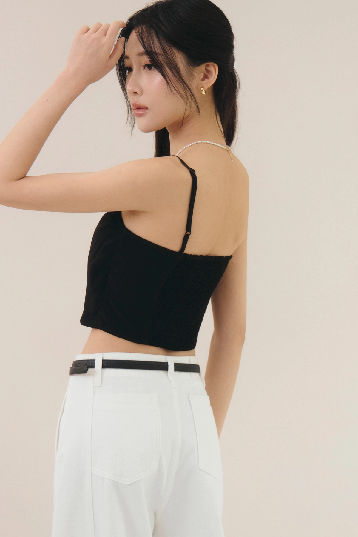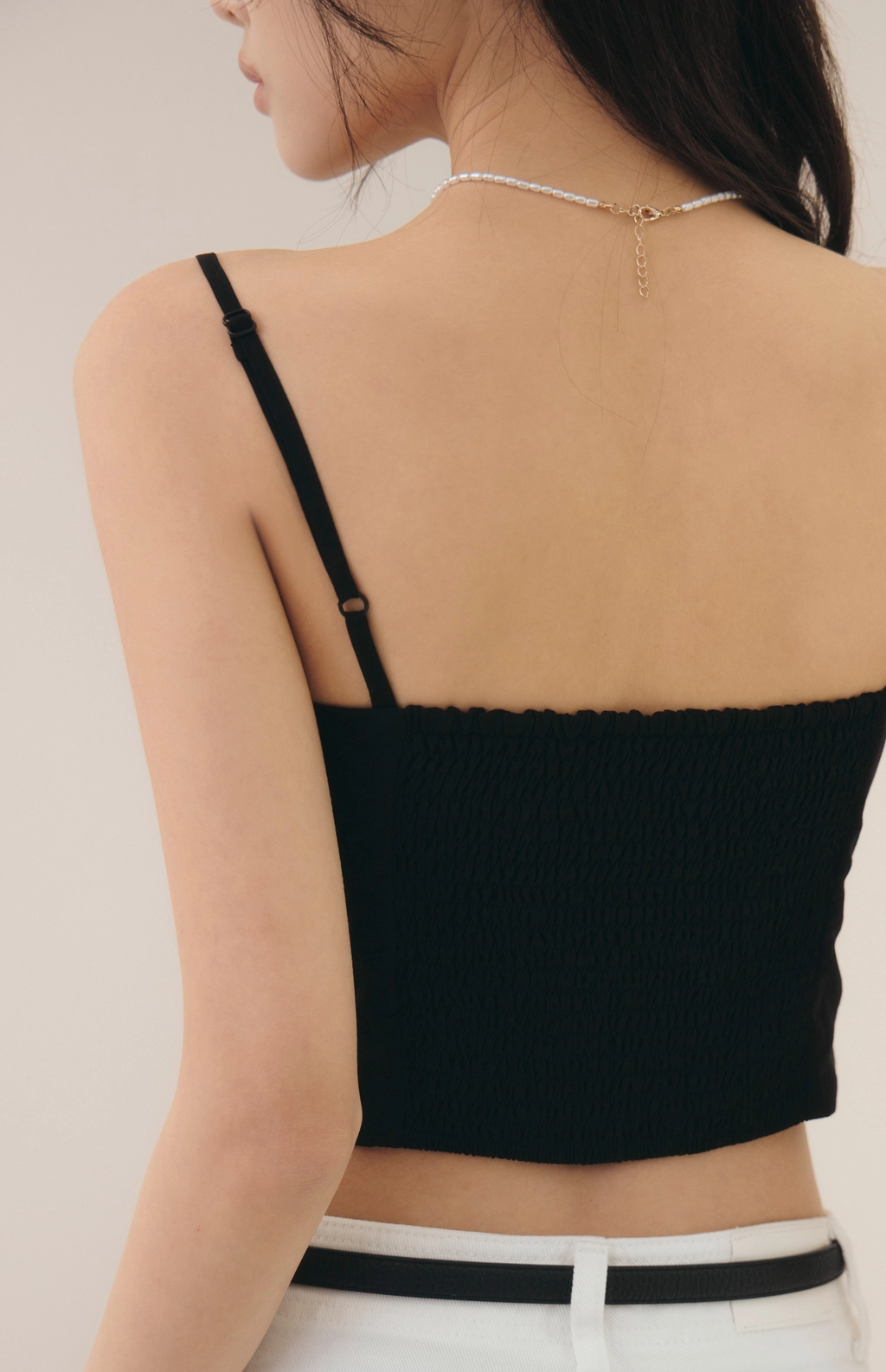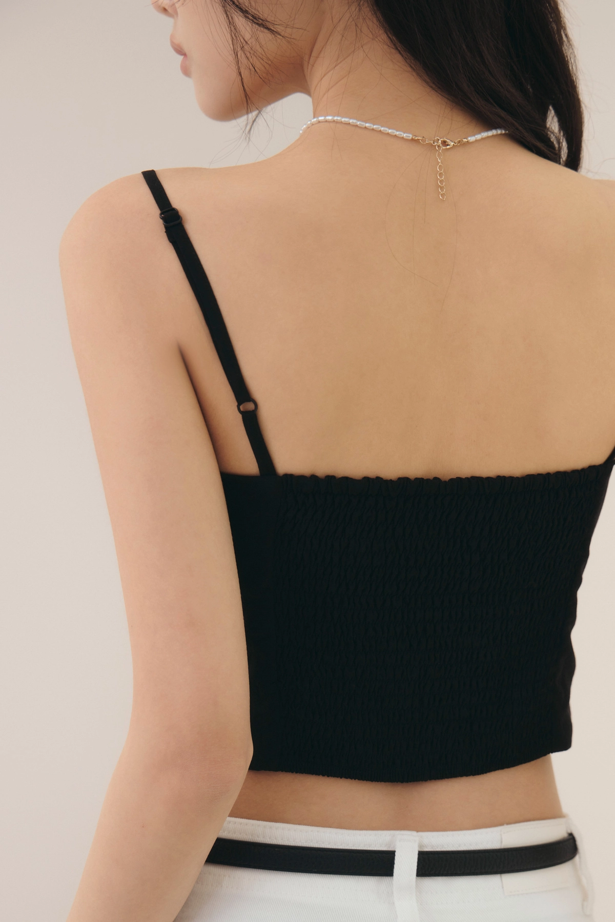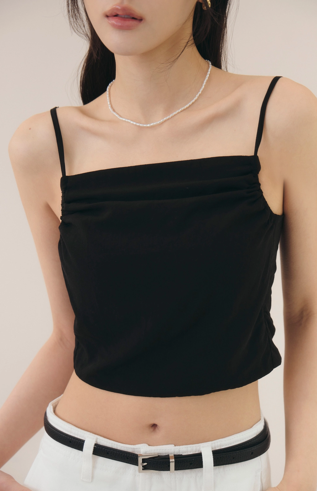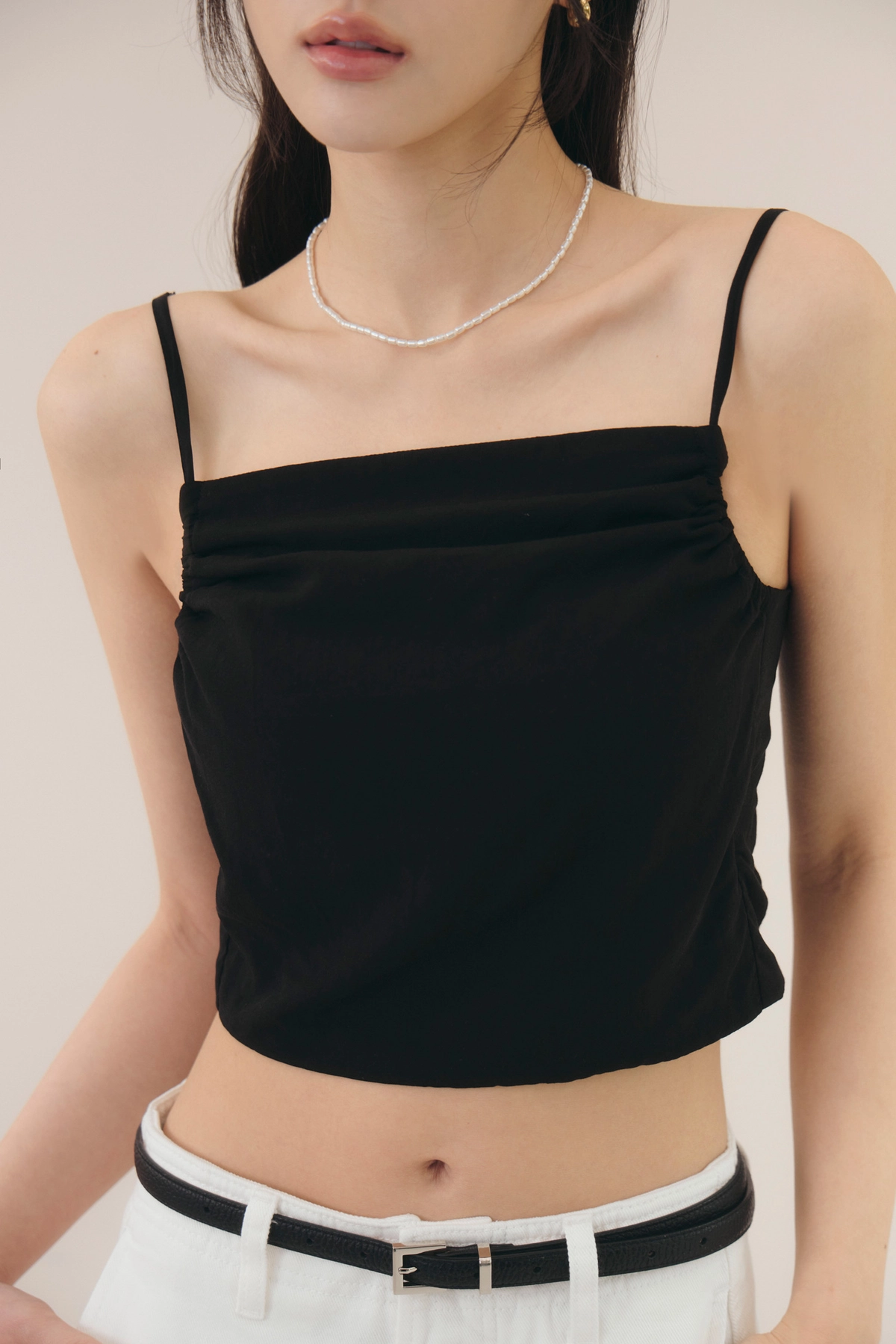 法式削肩抽皺Bra Top-黑