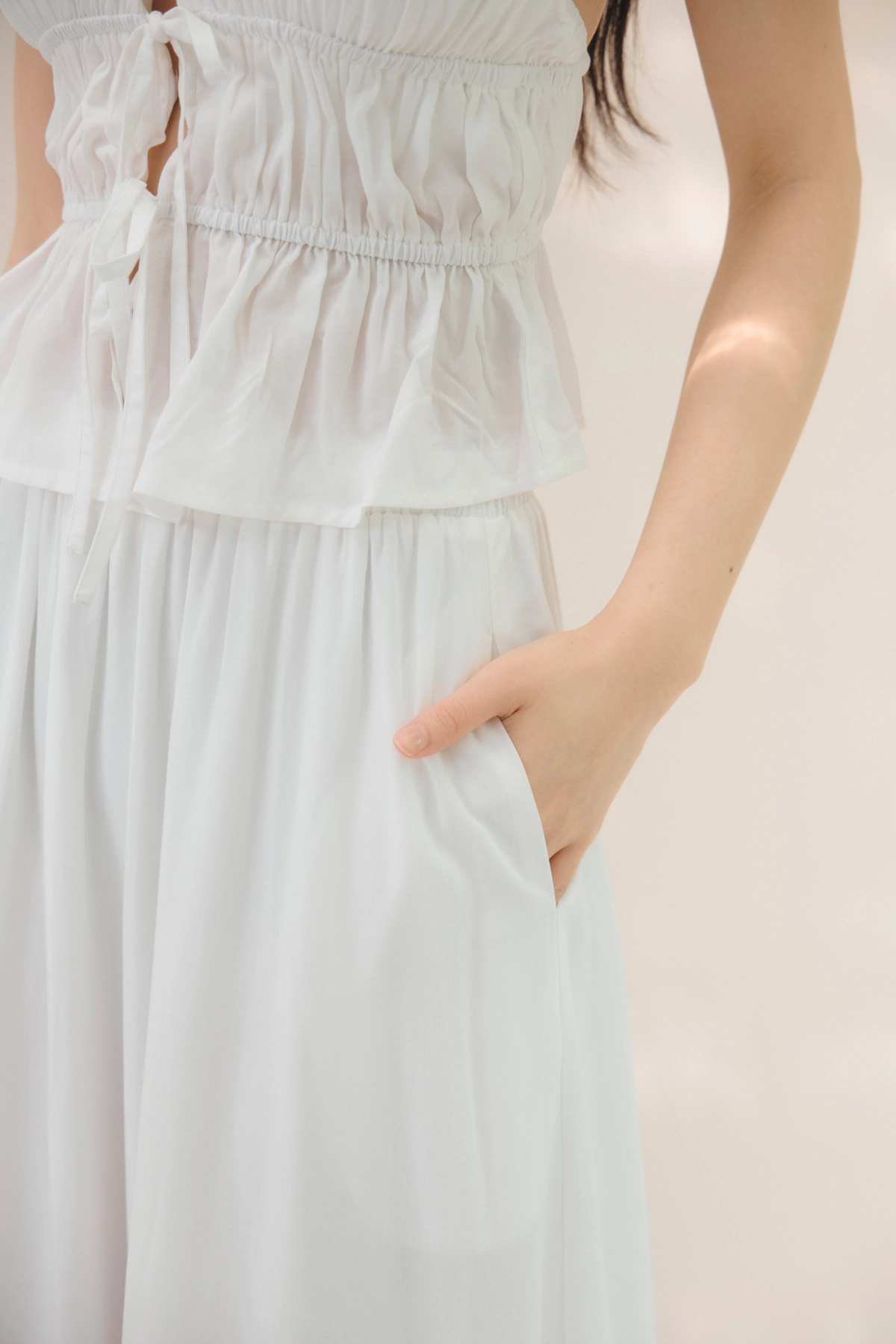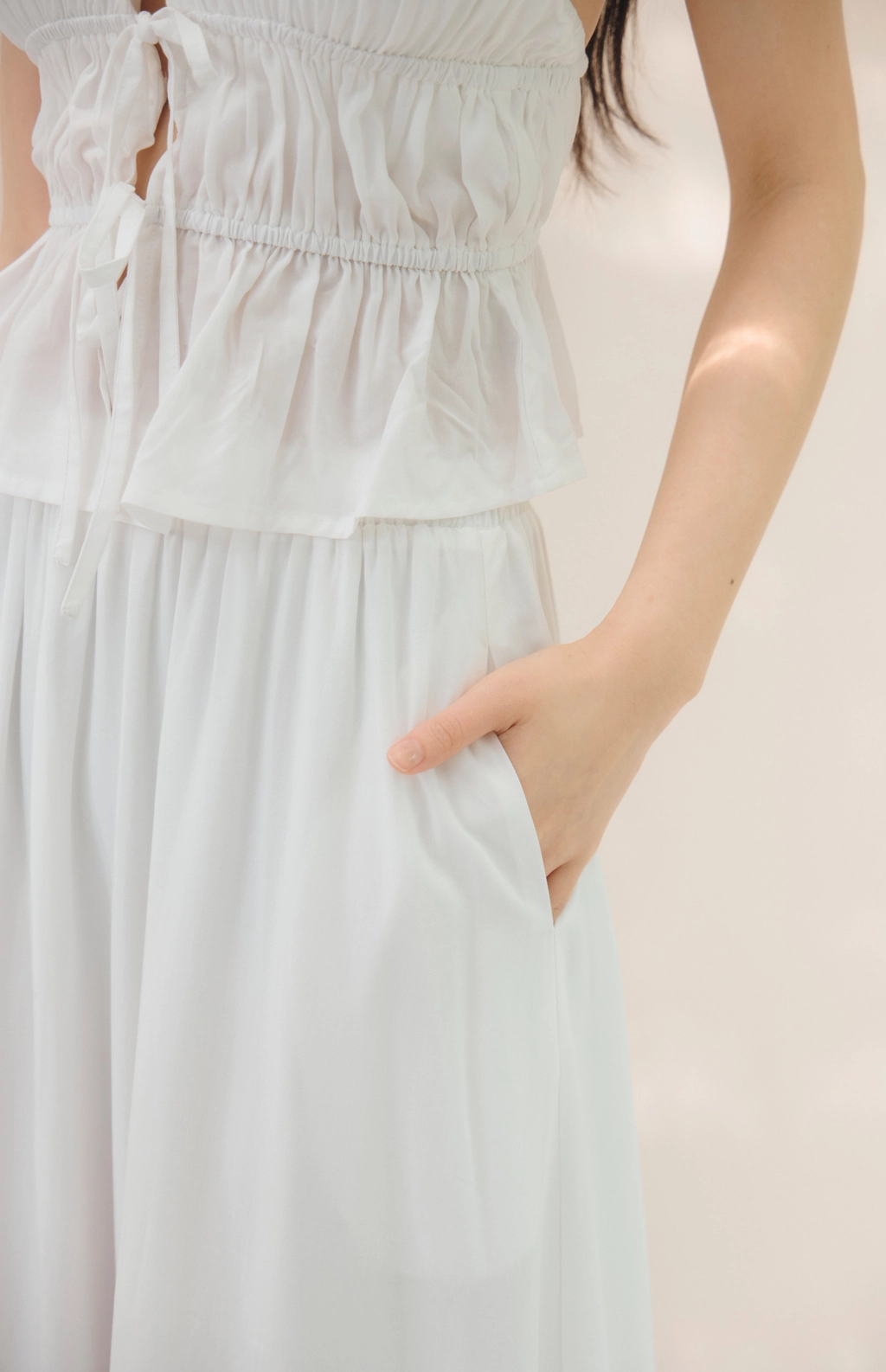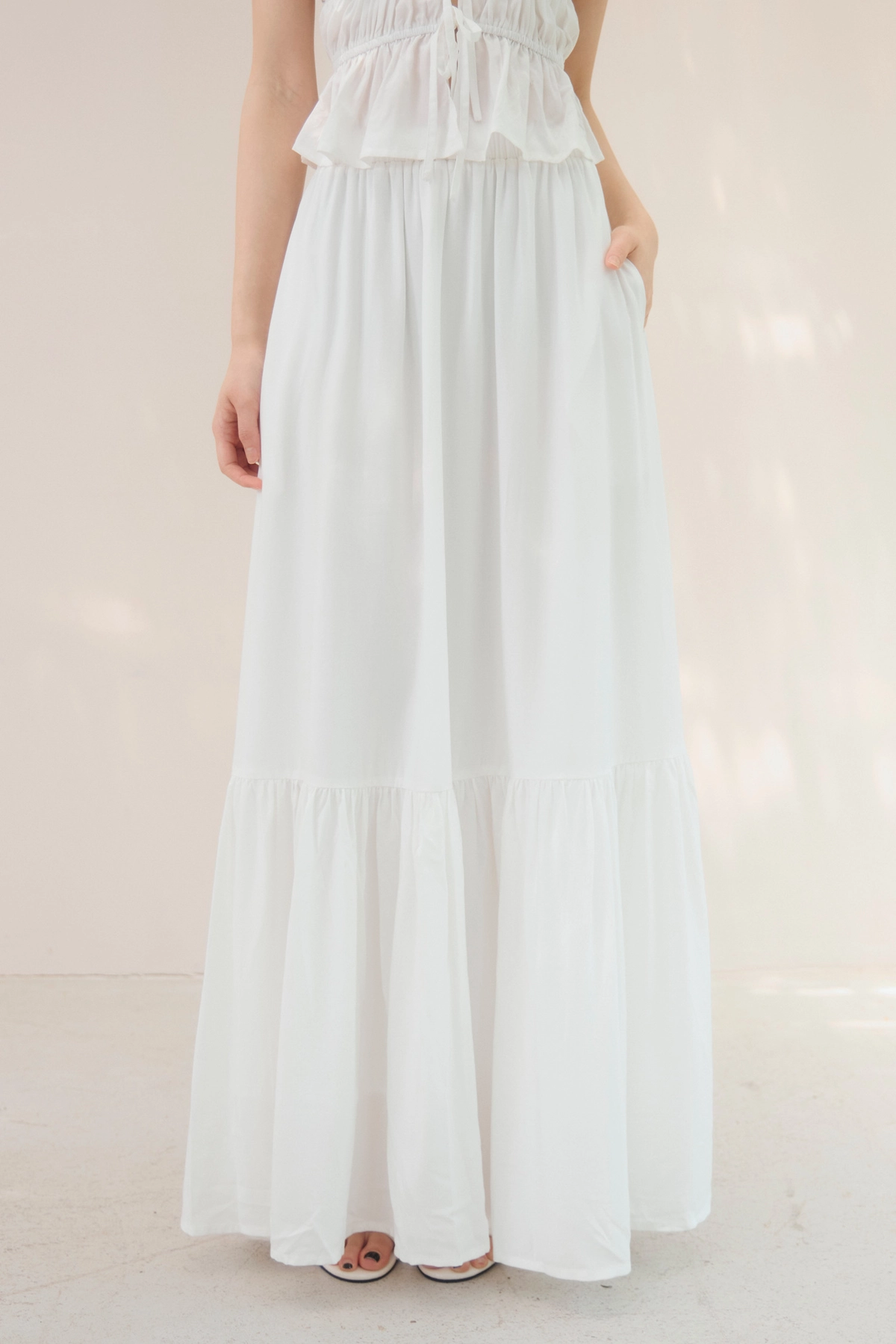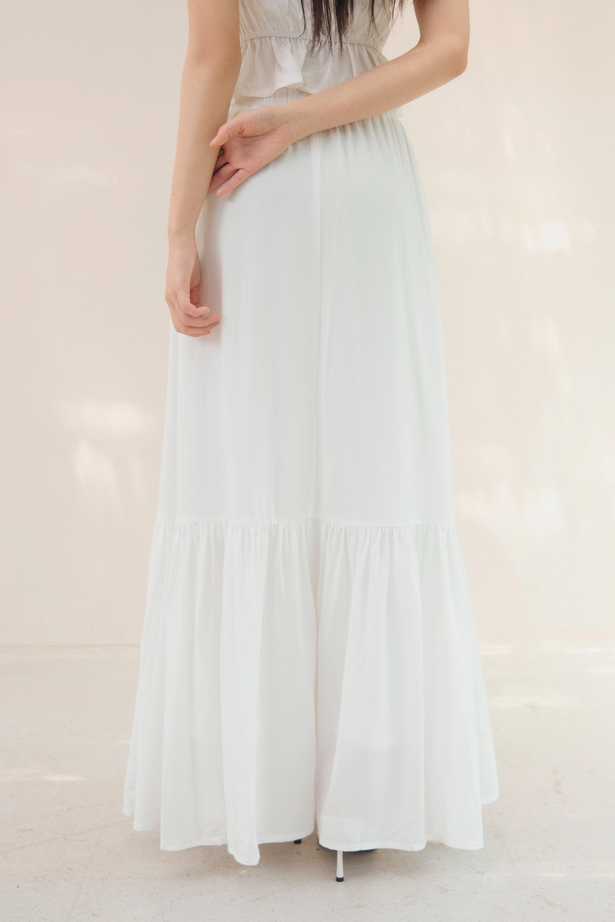 法式荷葉飄逸感長裙-奶白