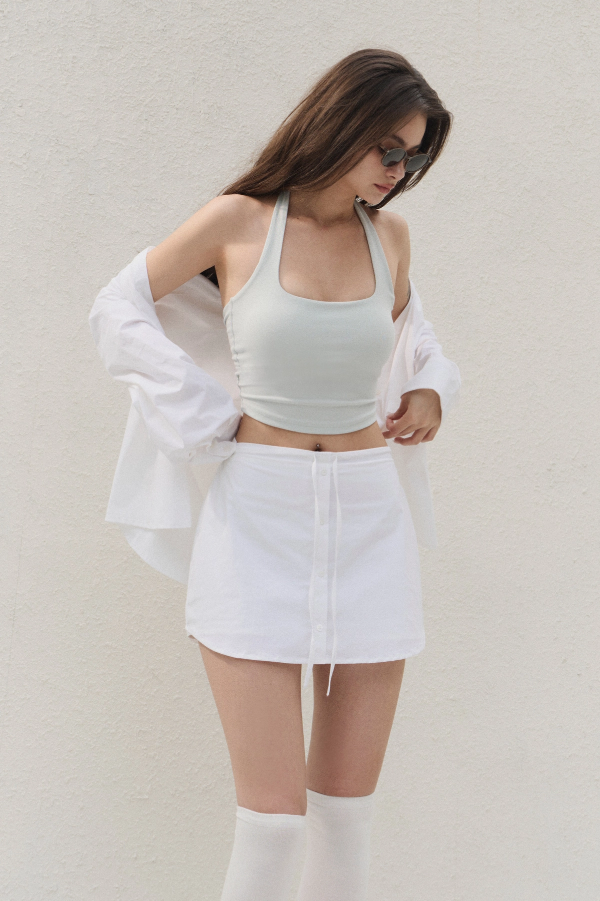 2.繞脖方領版型,修飾臉部和肩頸線條
