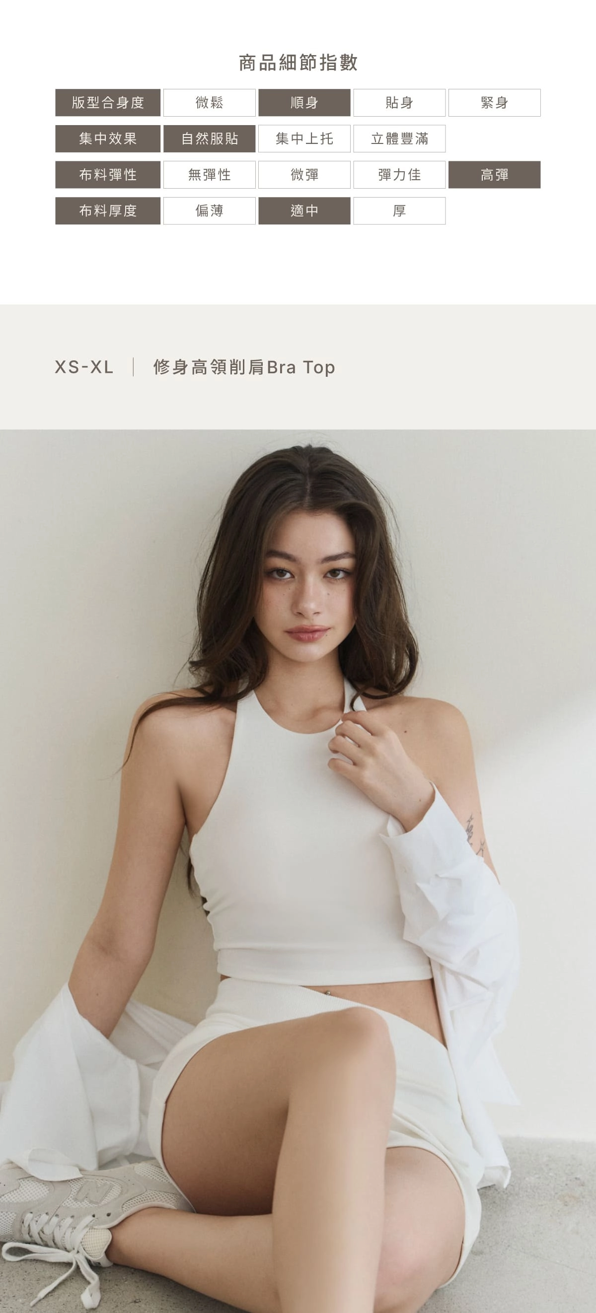 ▲為呈現胸型集中效果,本品牌版型較貼身。
