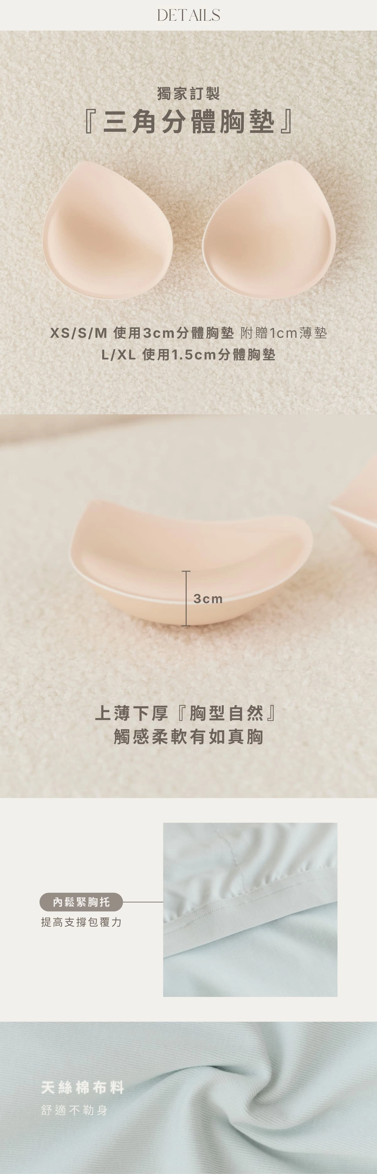XS-M貝橘獨家打版3cm、1cm分體胸墊
