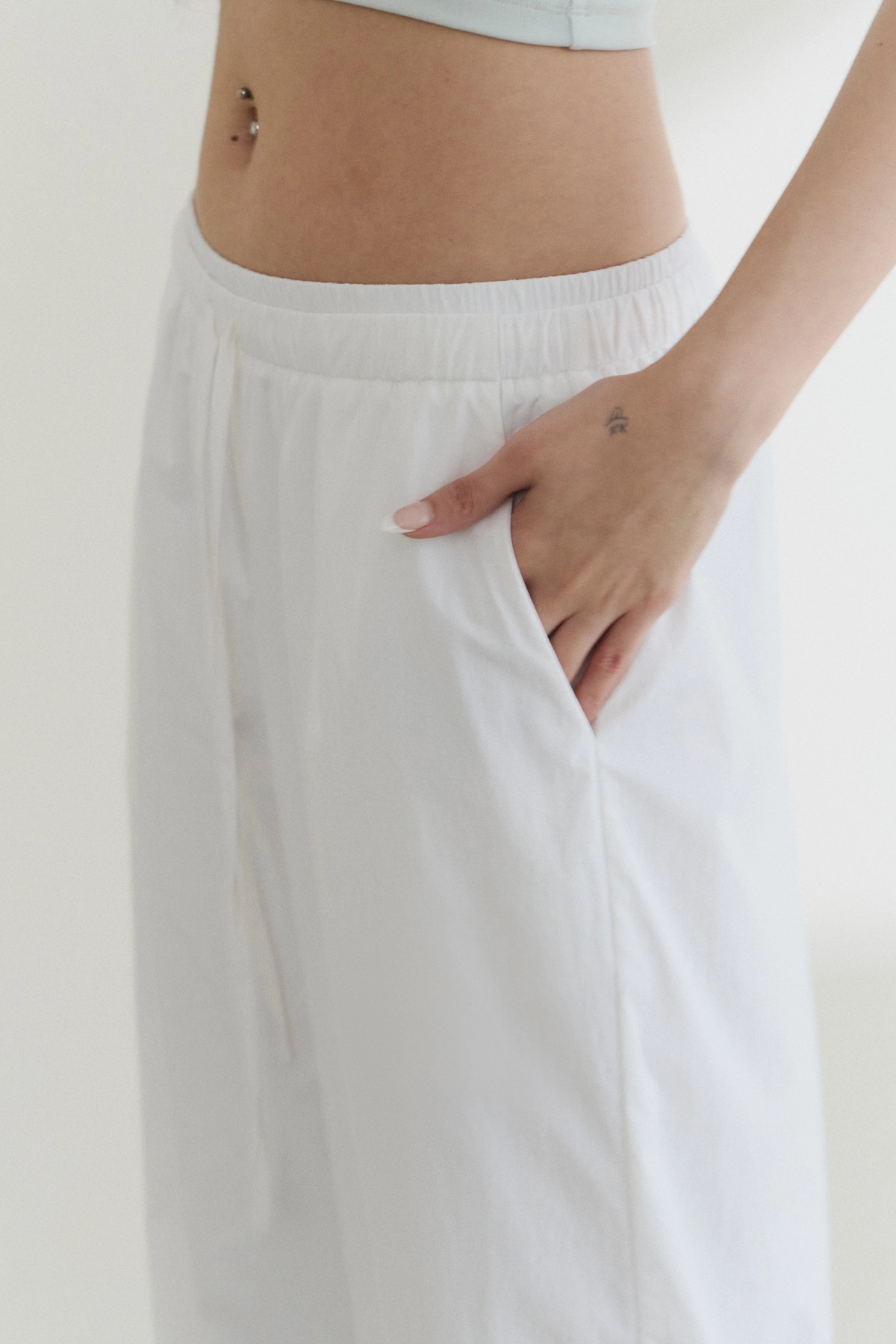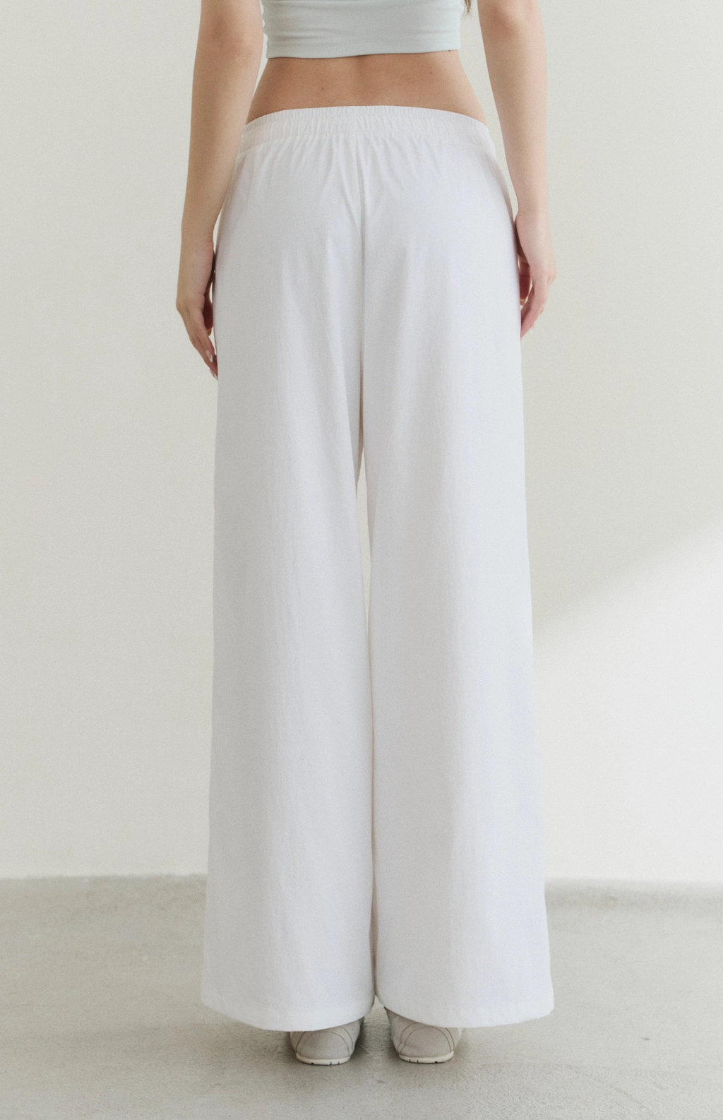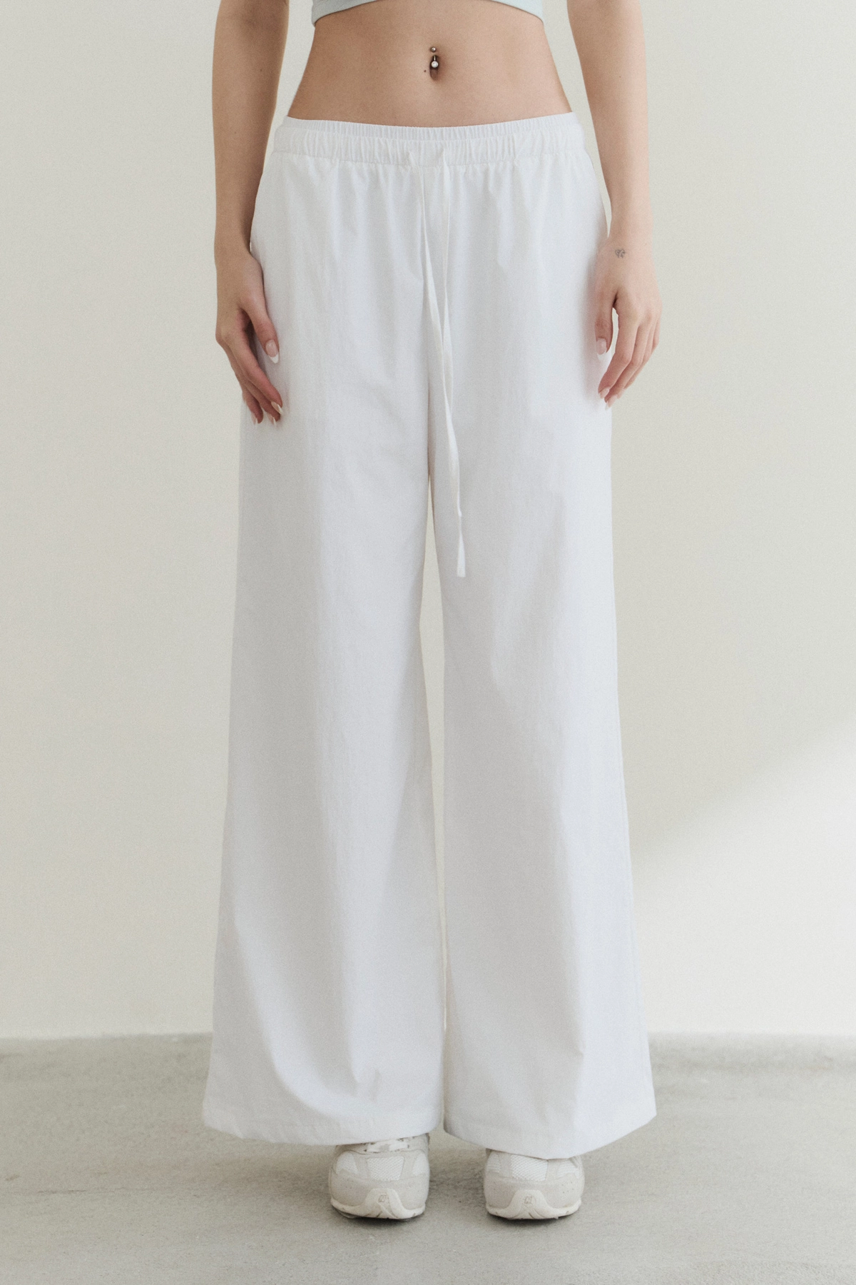 防曬抽繩假兩件直筒長褲-白
