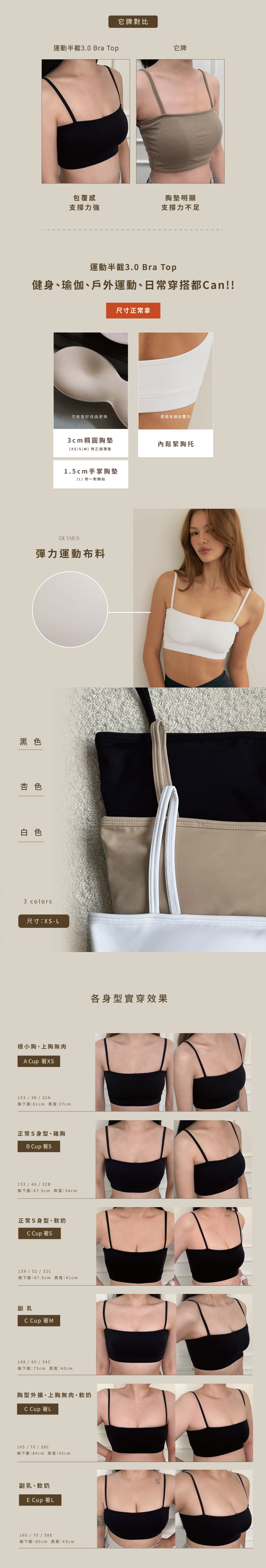 BRA TOP尺寸選購除了要參考罩杯外也需參考身高、體重